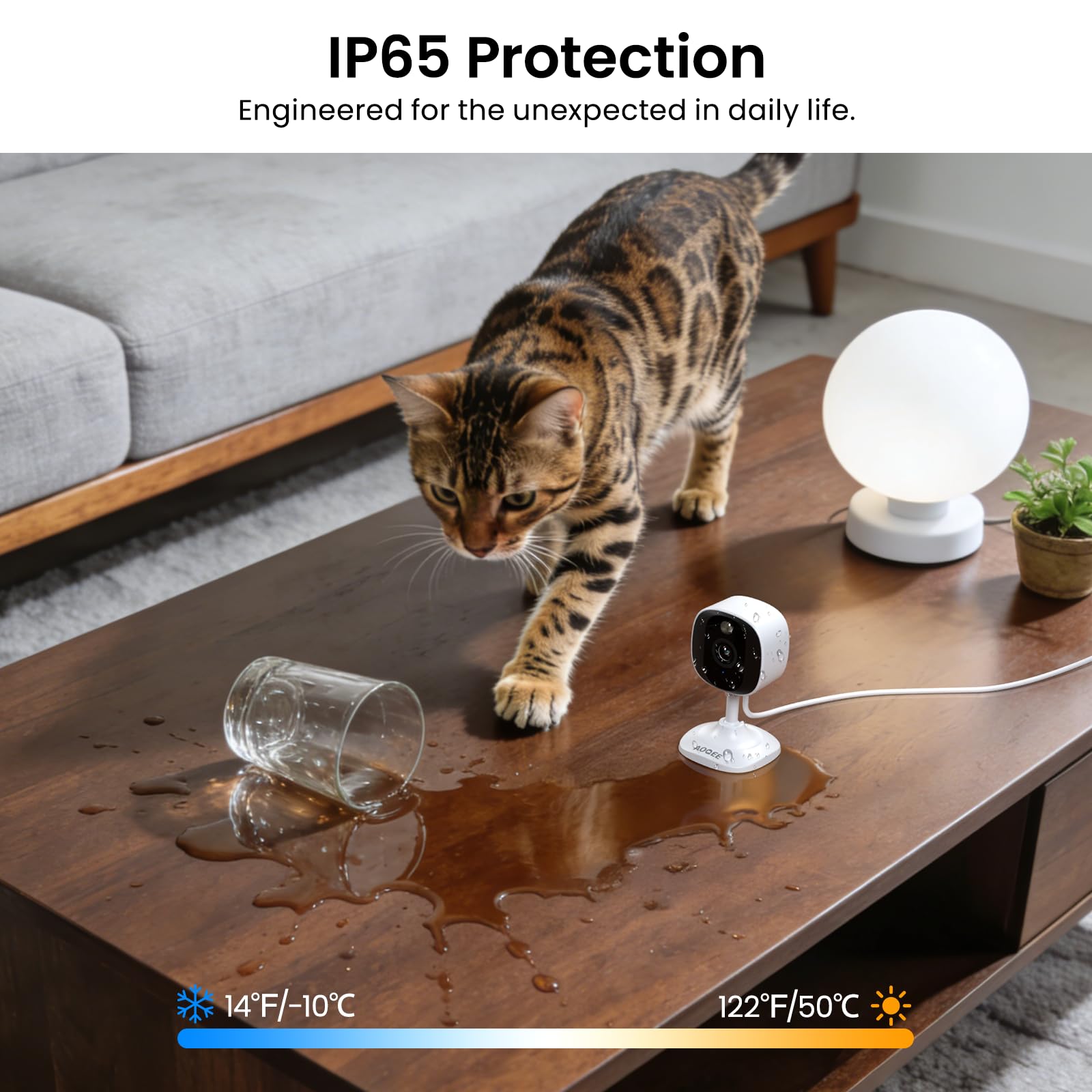 【IP65 Waterproof & Easy to install】The outdoor cameras for home security, which have an IP65 waterproof design, so in any weather, there is no need to worry about the outdoor cameras being damaged. The security camera outdoor with dust and water resistance that can be easily installed on walls, shelves, trees, roofs, and other places you want, helping you to keep an eye on your home security anytime and anywhere.