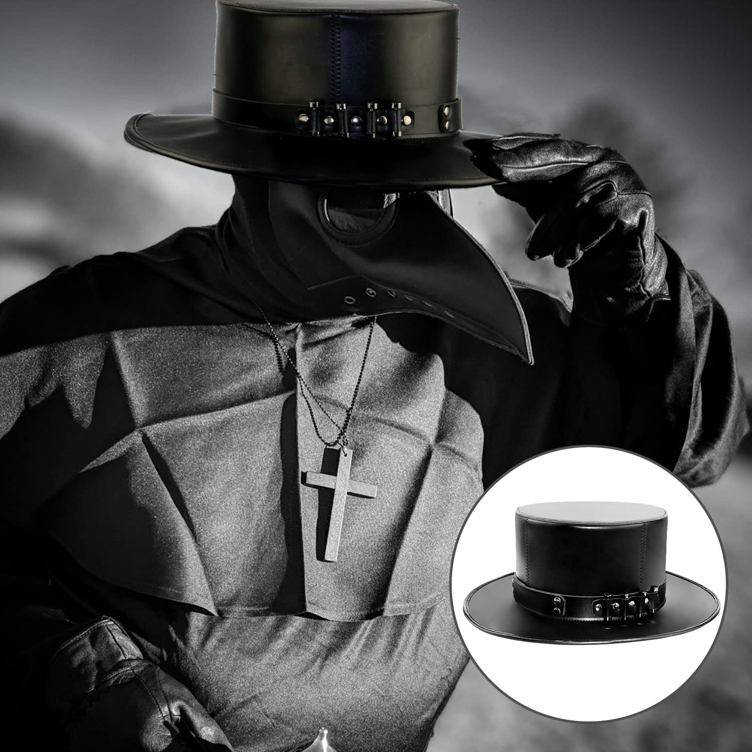 What You Get - 1 pack Steampunk leather plague doctor top hat and provide you with a 30-day refund or replacement. If you have any questions, please contact us via email and we will solve it for you within 24 hours.