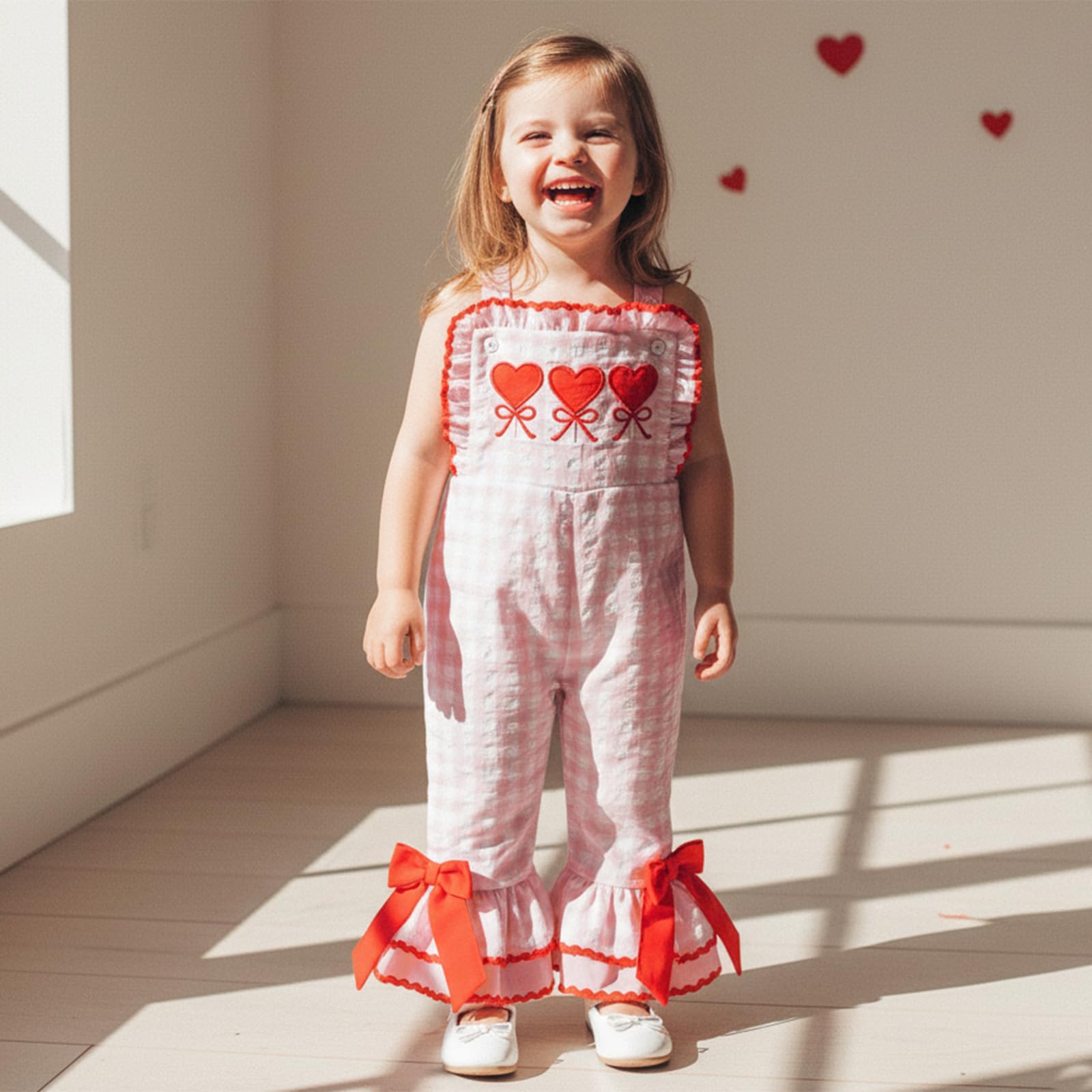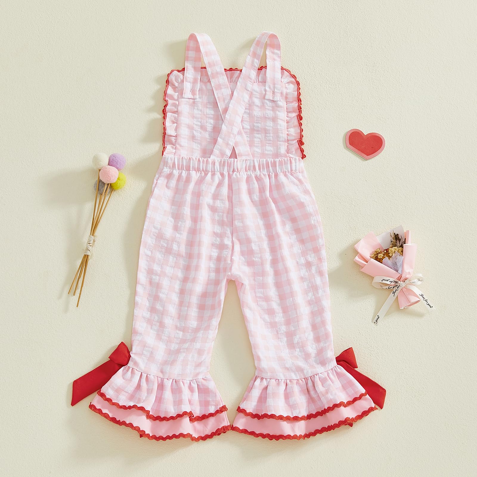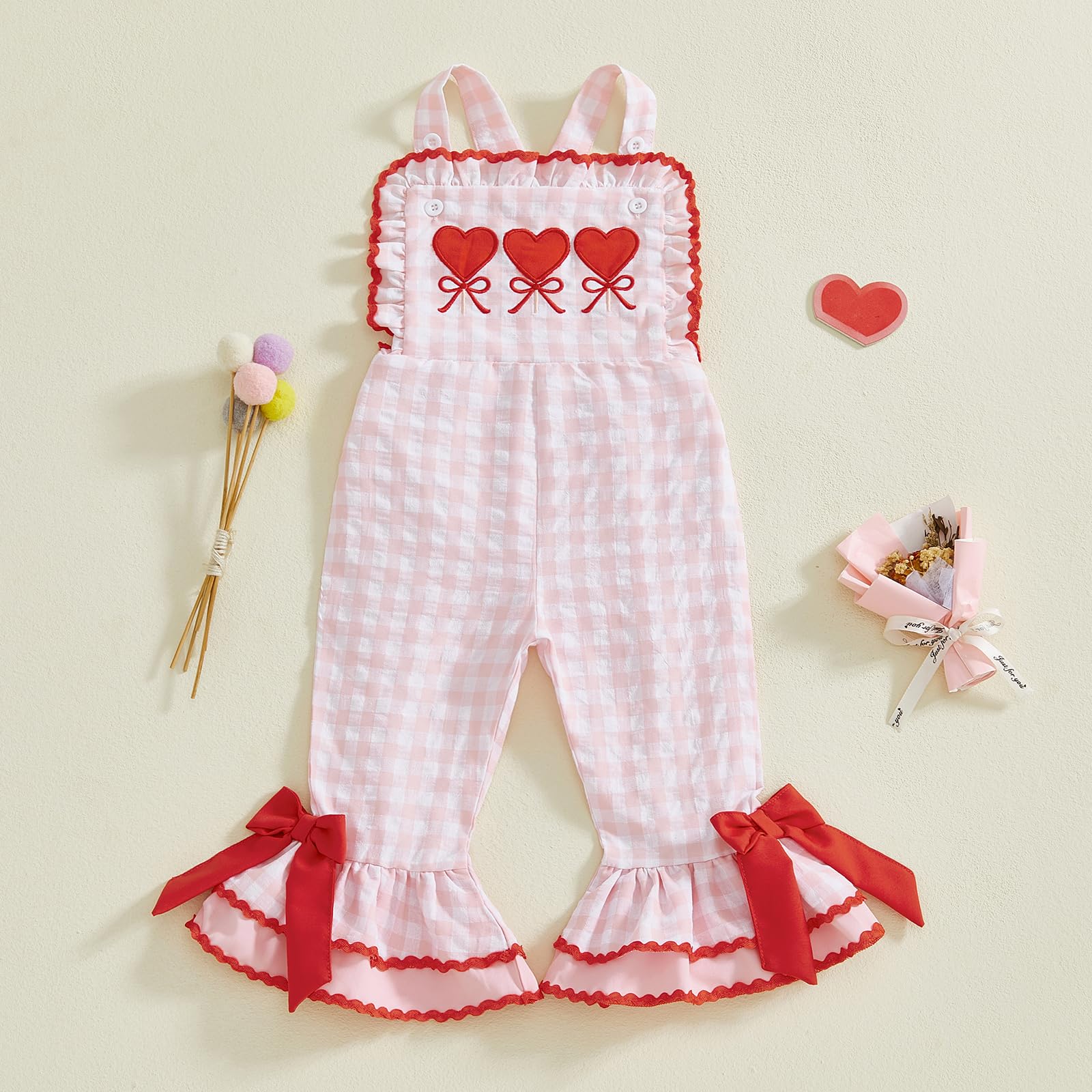 CASUAL DESIGN: Valentines Day baby girl clothes,valentines baby girl outfit,baby girl outfit valentines day; Toddler girls overalls with love heart bow embroidery, turkey/merry jumpsuit,striped print, cute bow, button straps, sleeveless, flared legs; Delicate design details make your little one cute and charming