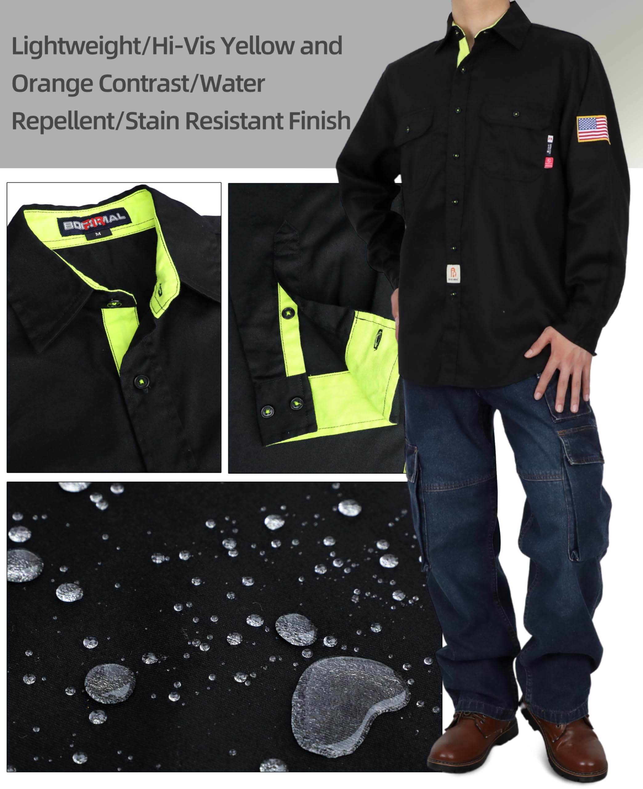 MORE USE TIME: UP TO 100 WASHES ,Our shirts has the appropriate level of protective gear and stays enforced up to numerous washes. You can wear and wash it over and over again for up to 100 times before FR still works.(NFPA2112,ASTM F1506,CAT II)
