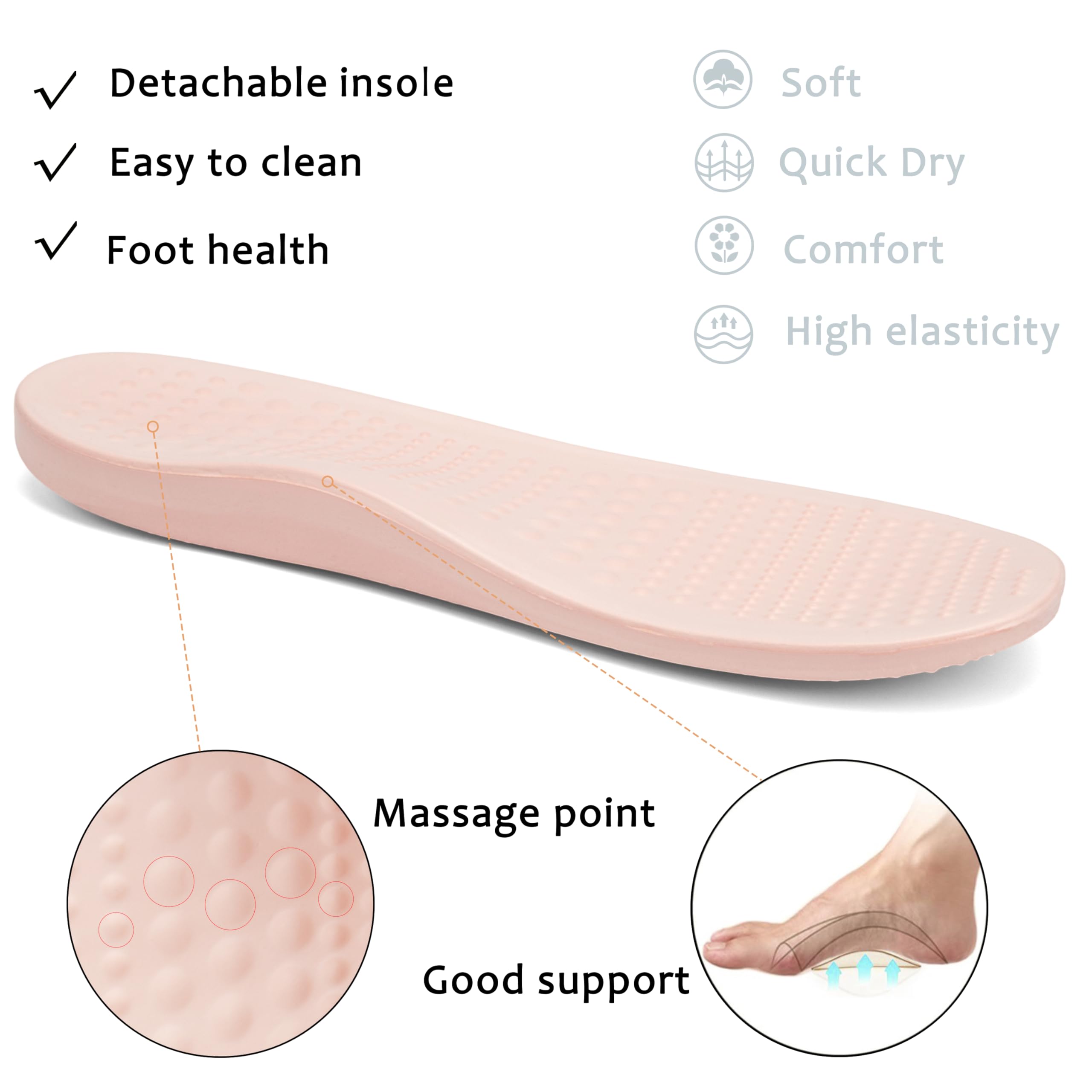 BETTER SUPPORT: Our unique insole provides arch support, absorb impact to reduce the stress on your feet, joints, back