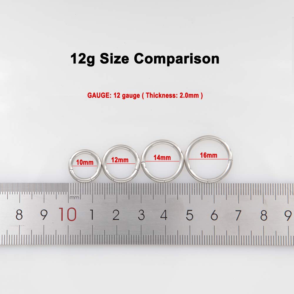 10mm Septum Ring / 10mm Hoop Earrings: 12 gauge (thickness: 2mm), inner diameter 10mm ( 25/64 inches ). Please check the inside diameter carefully according to the SIZE CHART OF THE HOOP NOSE RING. Select the most suitable size for yourself.