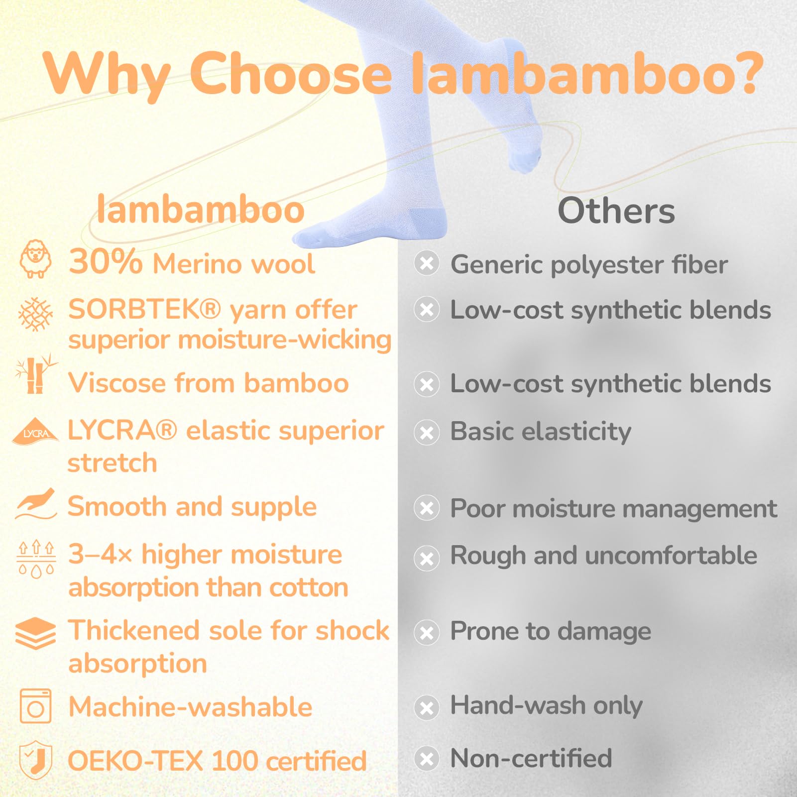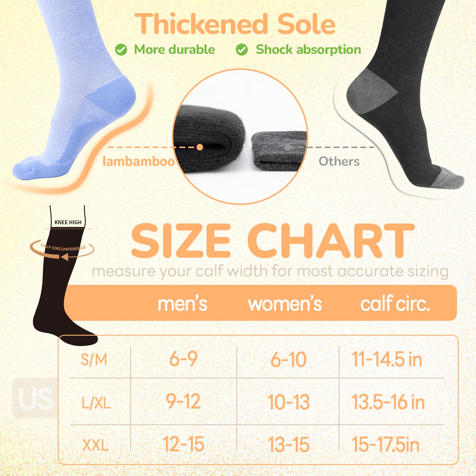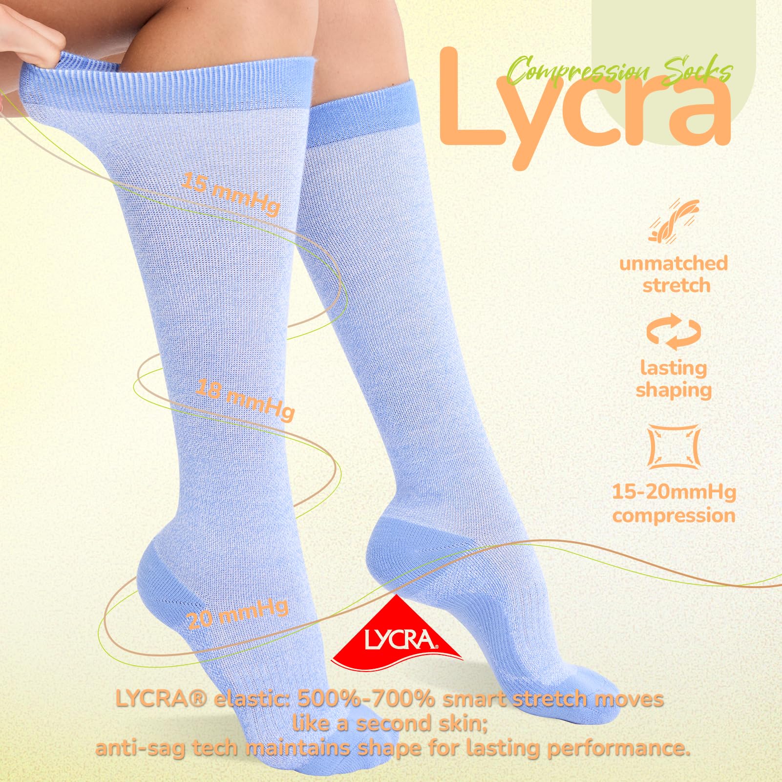DURABLE & EASY CARE: Reinforced footpads can absorb shock, protect wear-prone parts. LYCRA enhance durability and comfort. Pre-shrunk compression stockings resist shrinking and maintain shape through washes; machine washable for convenience