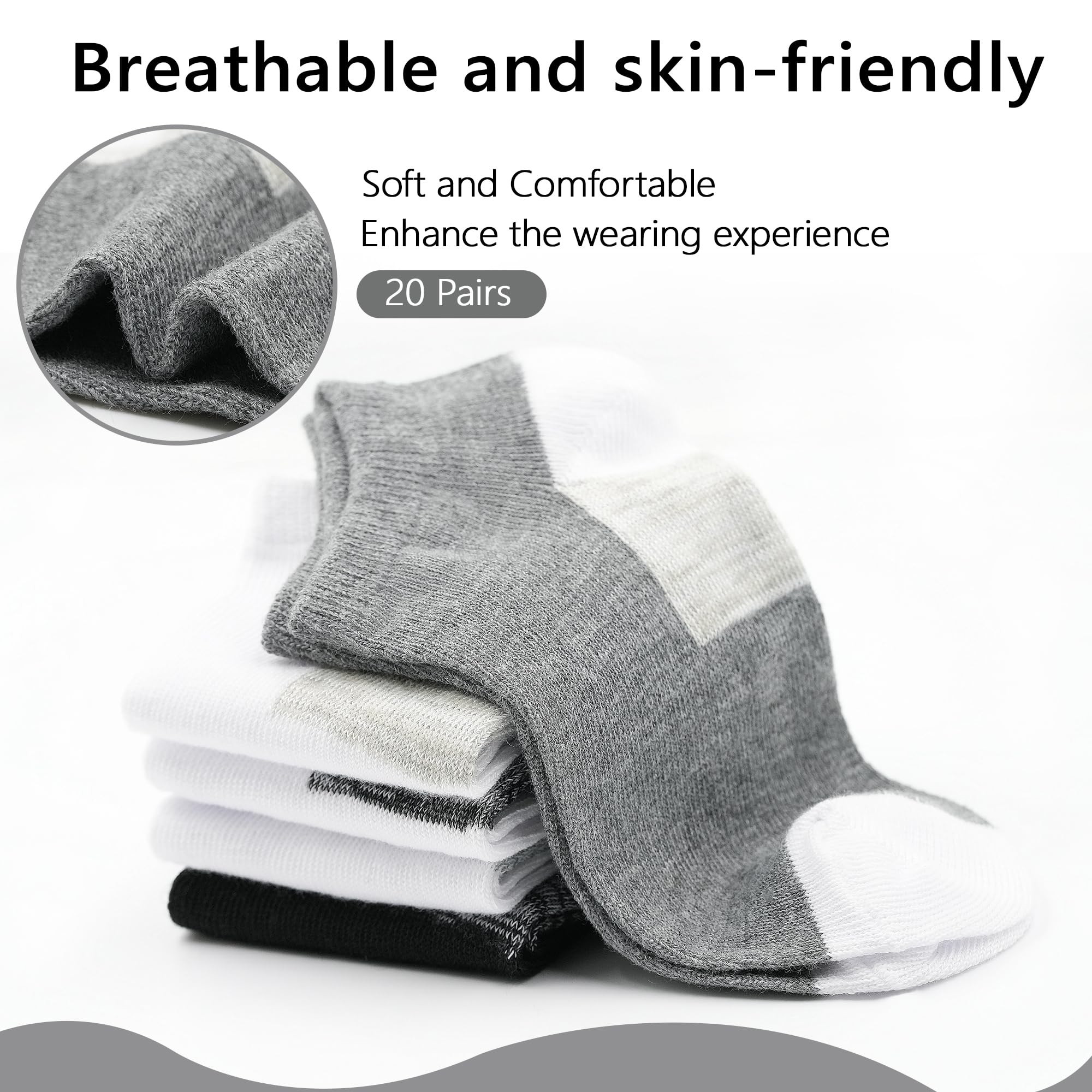 Soft-fabric kids' ankle socks: These 20 pairs of boys girls socks are made of high-quality, soft and comfortable blended fabric, which is soft and skin-friendly, breathable and perspiration-free, which can keep your child's feet comfortable all day long.