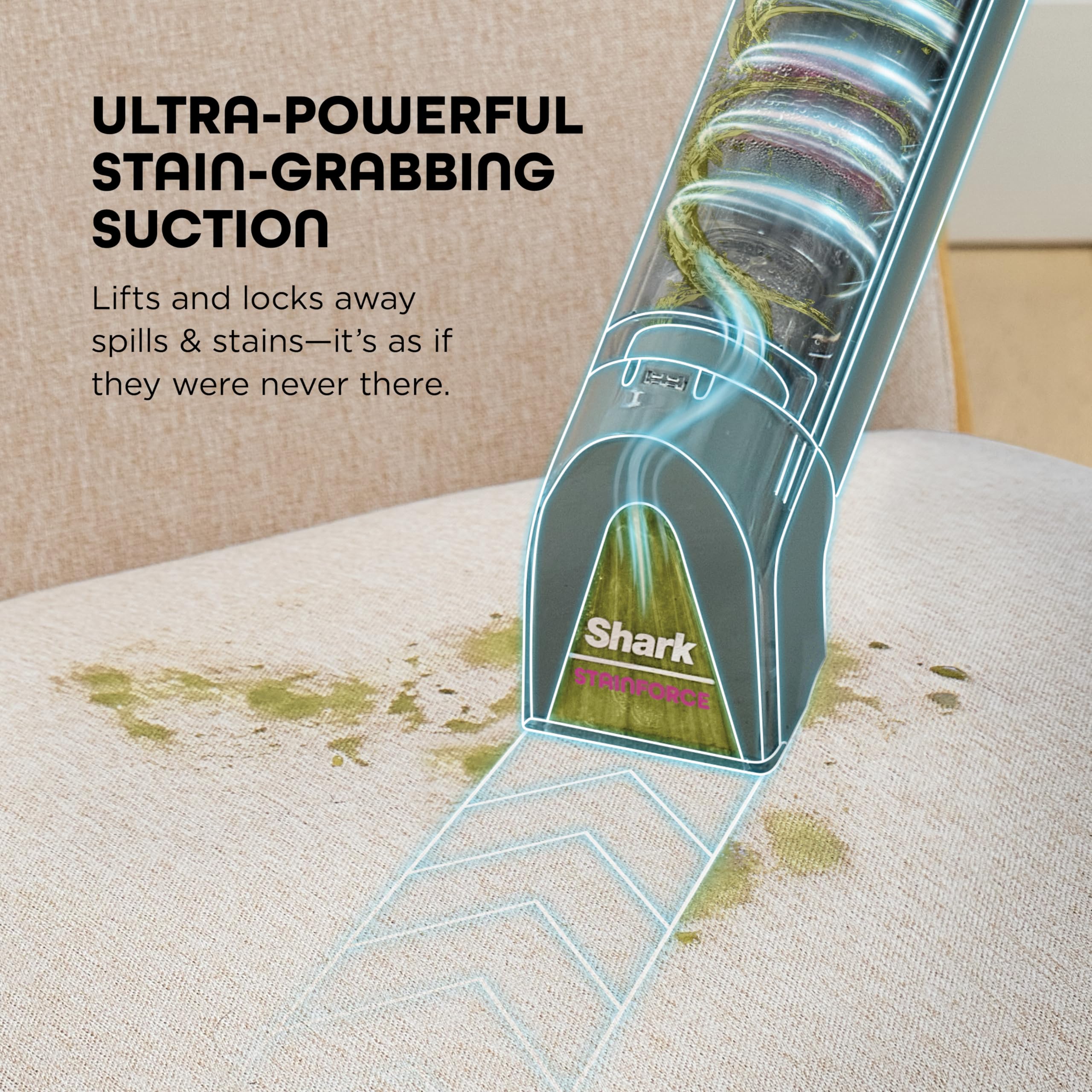 Stop tough stains and spills in their tracks, anytime & anywhere with the ALL NEW Shark StainForce Cordless Stain Destroying System. Ultra-powerful stain-grabbing suction + 30x more stain-fighting power* combine to deliver the best tough stain removal+ in the portable stain cleaner market. Cordless and always ready when you need it