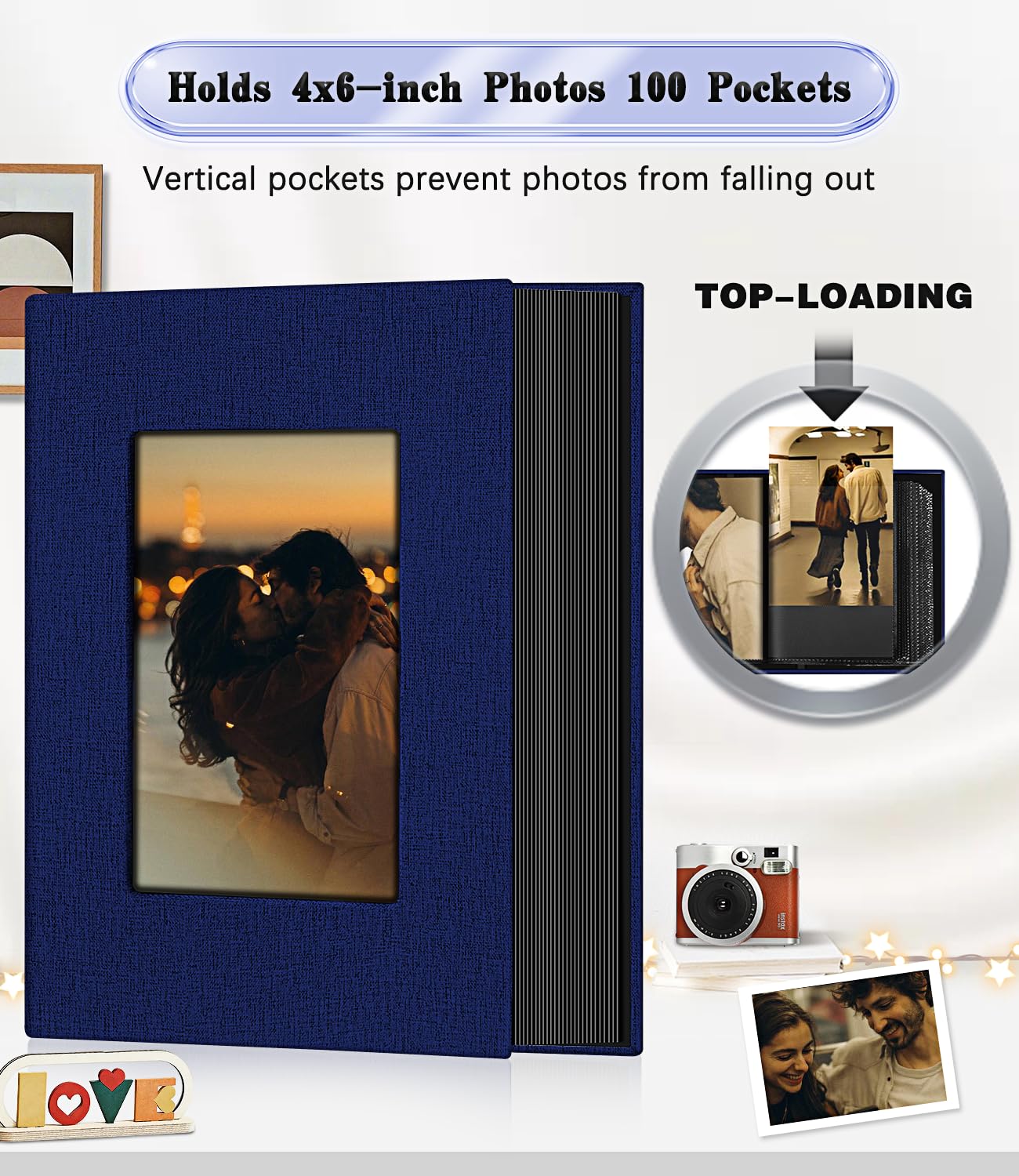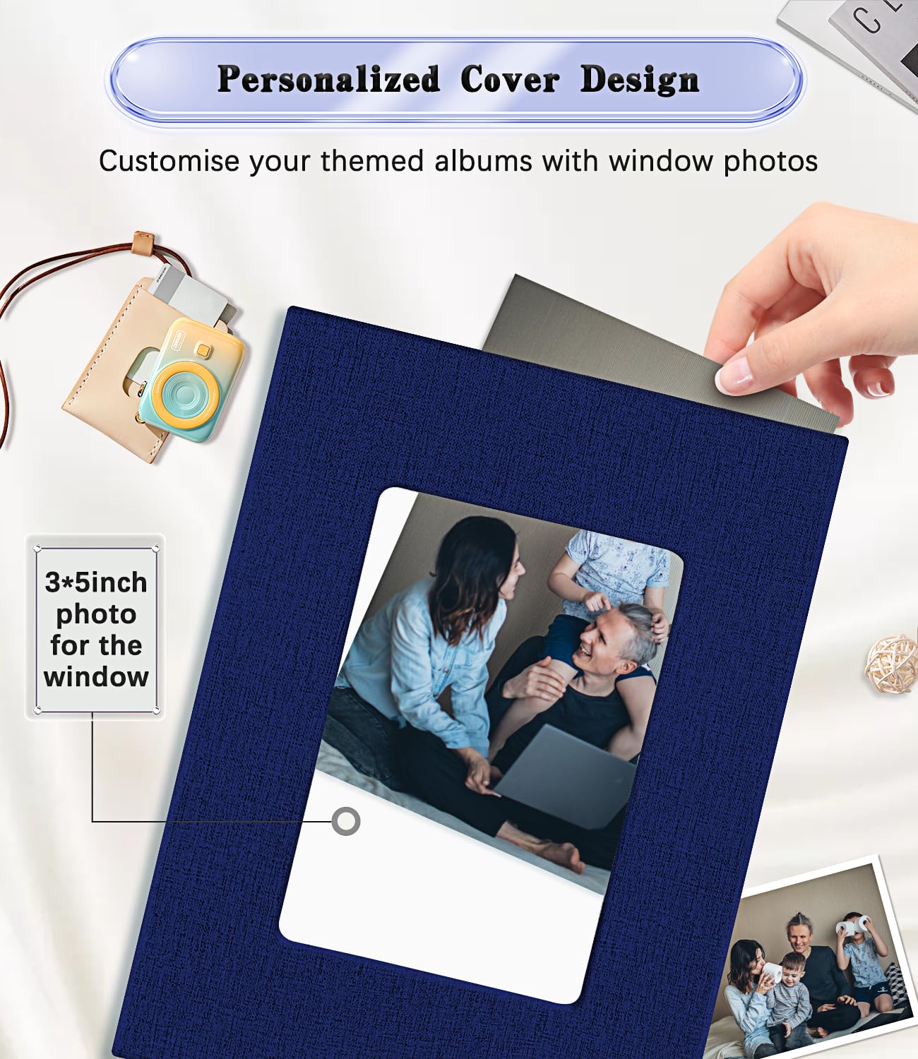 💖 Exquisite Window Design: This 4x6 photo album cover is wrapped in high quality linen, the classic linen cover not only adds vintage sophistication, but also ensures durability and protects your precious photos.The cover of the album has a flexible openable window with replaceable window photos (3*5 inch), customised to change your personal theme album.