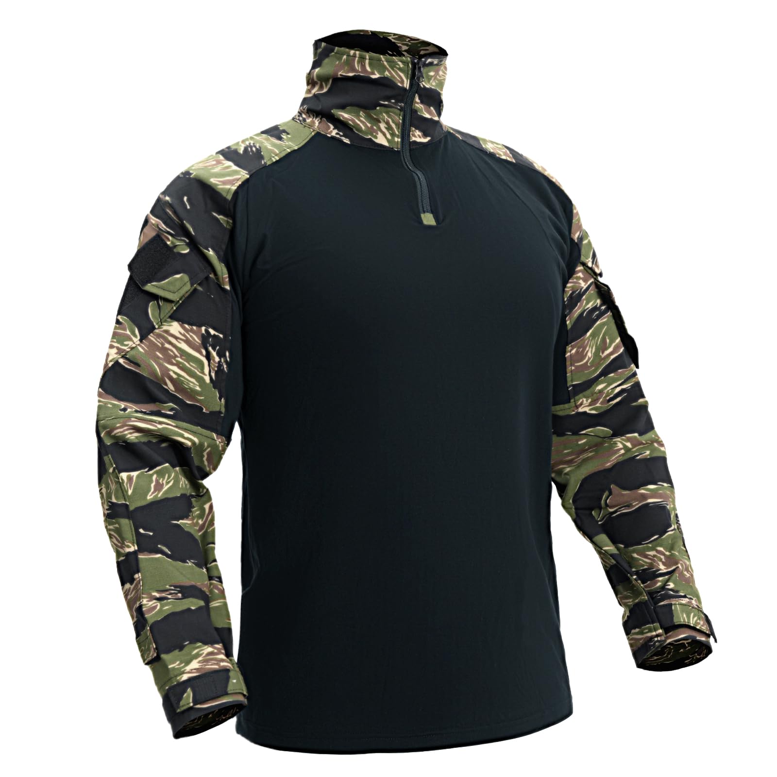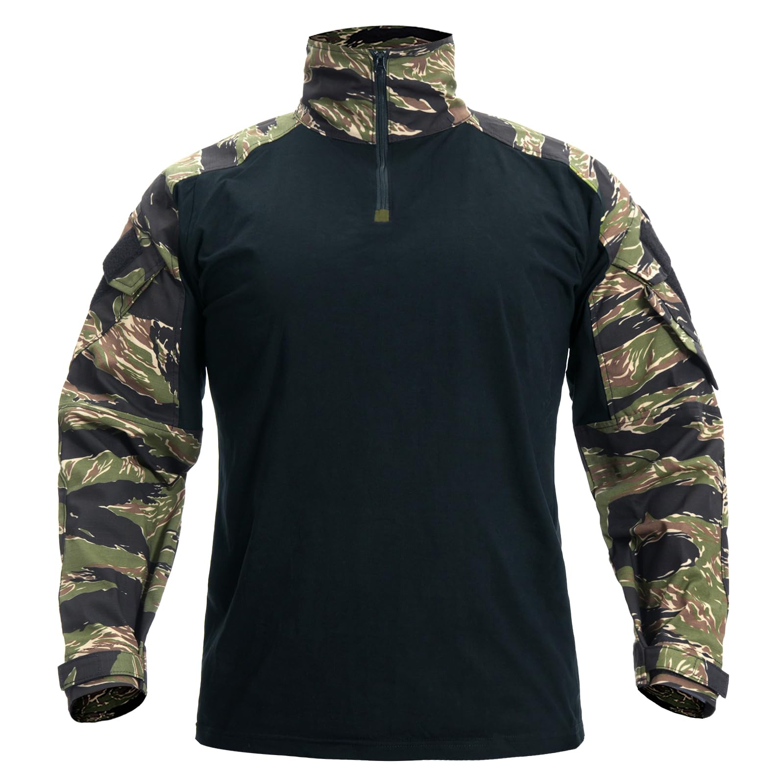 FEATURES: This tactical shirt has 2 large pockets at both upper-arm side, providing extra carrying ability. With hook-and-loop closure design for security. 2 loop panel tapes are set outside of the pockets for attaching your flags or patches. High quality YKK zipper for smoothly and long term use.