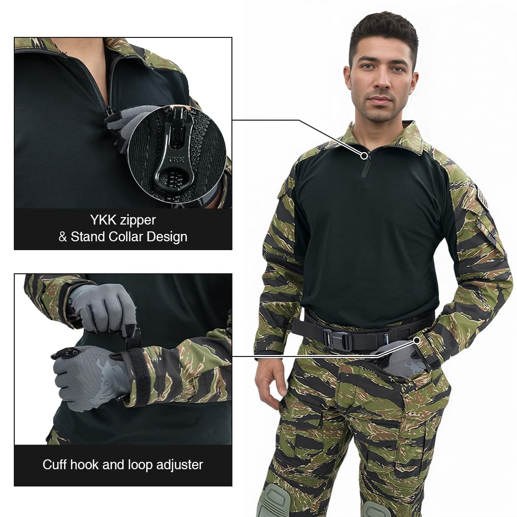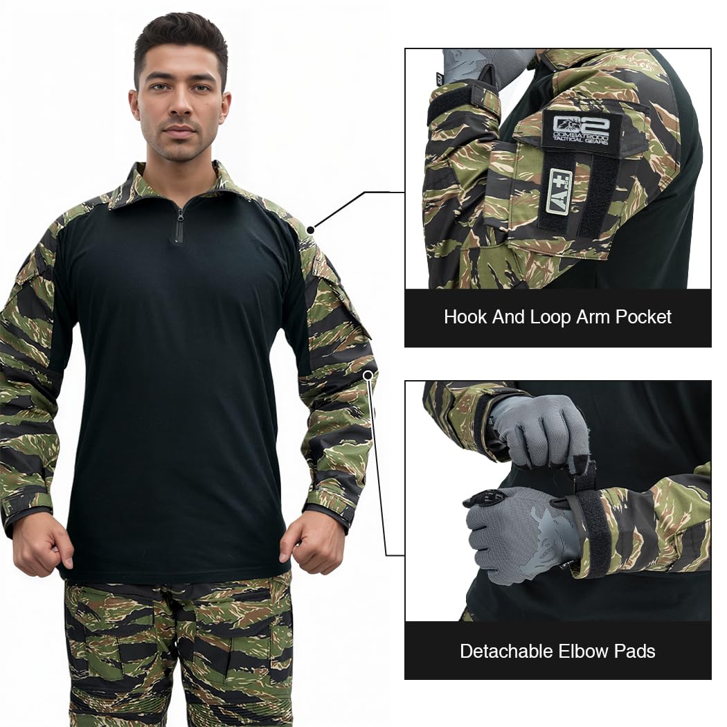 MATERIAL: Our combat shirts are made of high quality cotton and polyester fabric, The arm and collar part feature unique 50% cotton& 50% polyester fabric. Which can provide great comfort tear-resistance and protection. The body part is 100% cotton, skin-friendly and breathable, ensures comfort and durability.