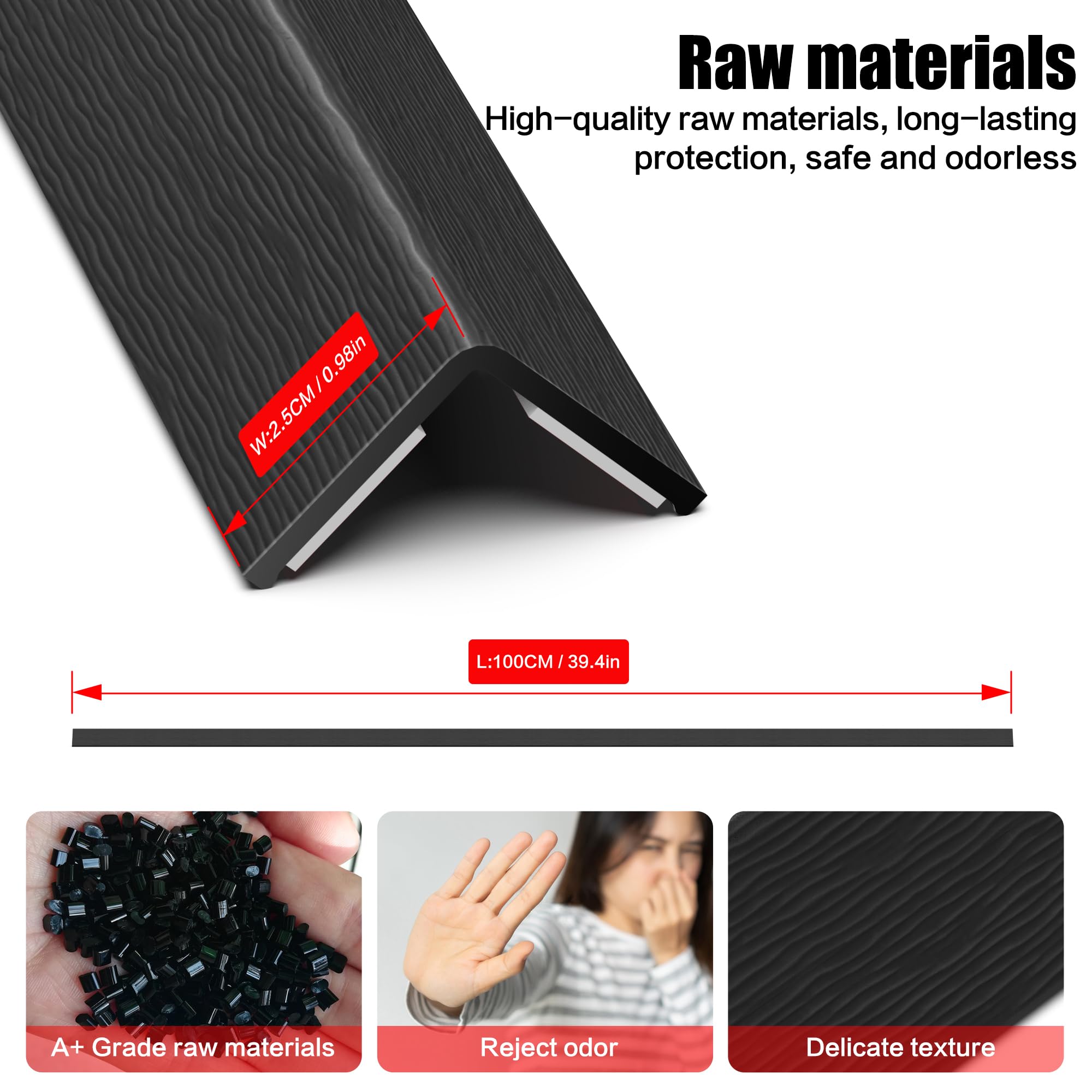 【Easy to Install】 Baseboard protector is no need for complicated installations or tools – simply peel and stick the wall corner protectors onto your desired surface. The pre-adhesive backing allows for a secure and lasting bond, ensuring your walls & cabinet & door frame stay protected for years to come.