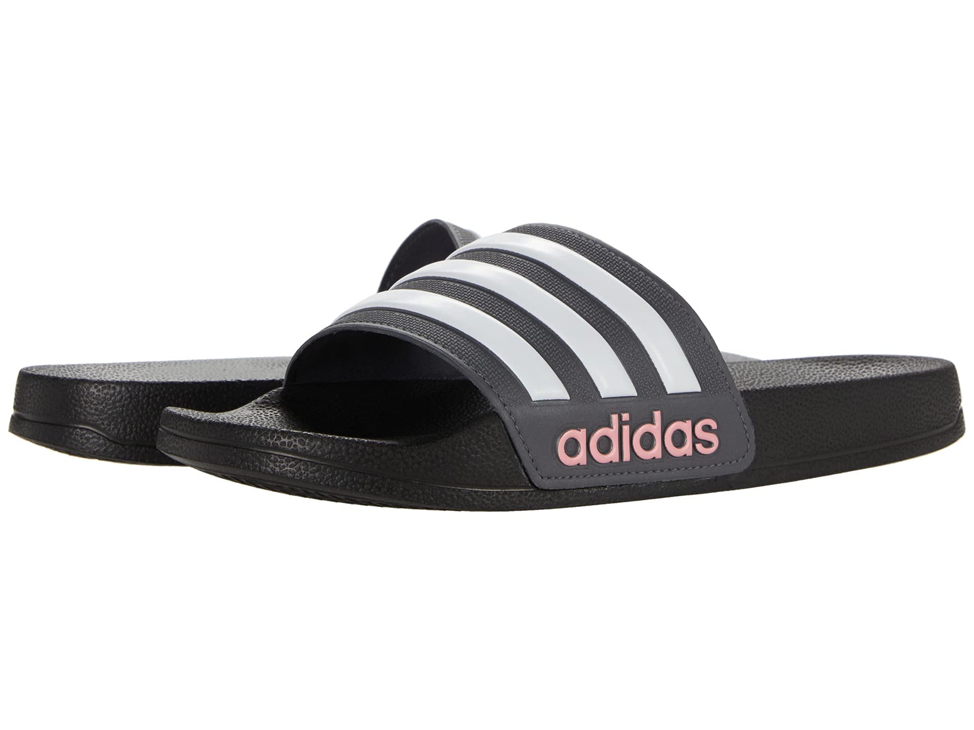 Description After their swim, treat kids' feet to comfort in these slides. The quick-drying slip-ons have a contoured Cloudfoam footbed that cradles small feet. The 3-Stripes on the bandage offer a touch of adidas style.