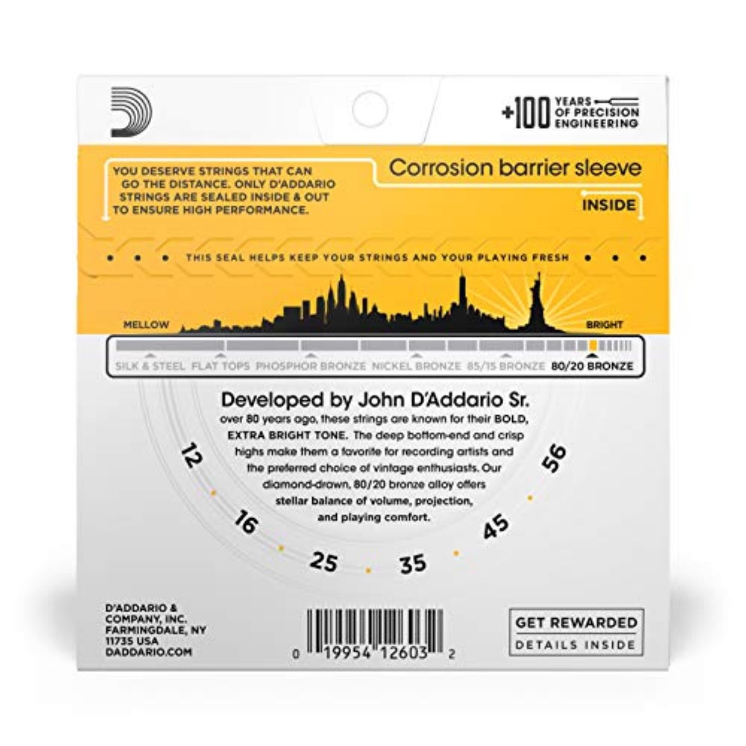 THE ORIGINAL ACOUSTIC STRING: 80/20 Bronze was originally created by John D’Addario Sr. and renowned guitar maker John D’Angelico in the 1930s.