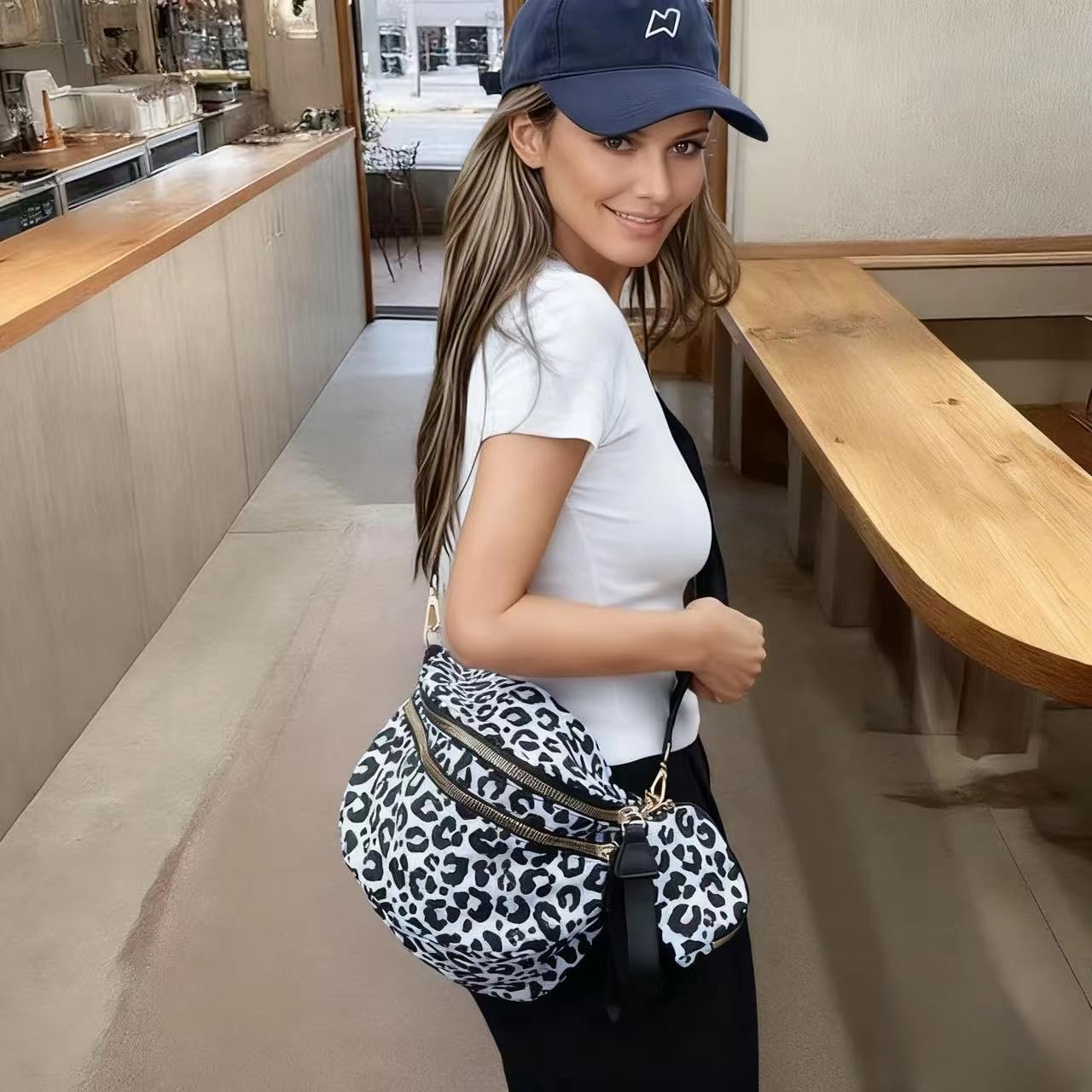 【Smart and Organized Design】Featuring a double zipper system with two separate compartments, this women's bum bag helps you keep your items neatly arranged. It also includes an interior hidden pocket for safeguarding valuables and a back zippered pocket for quick access to your cell phone while on the go.