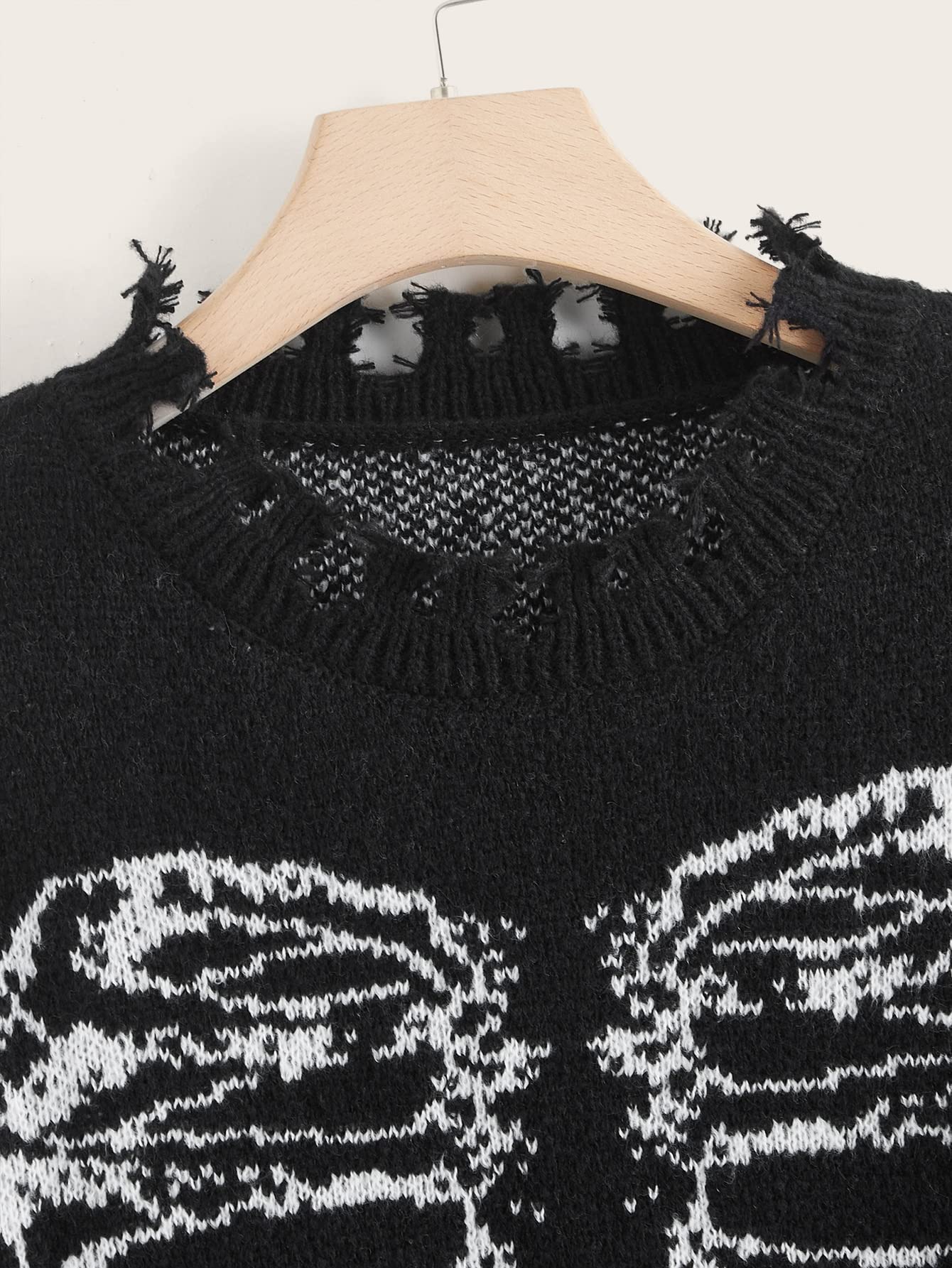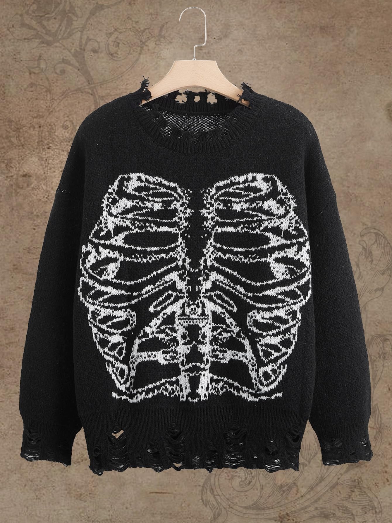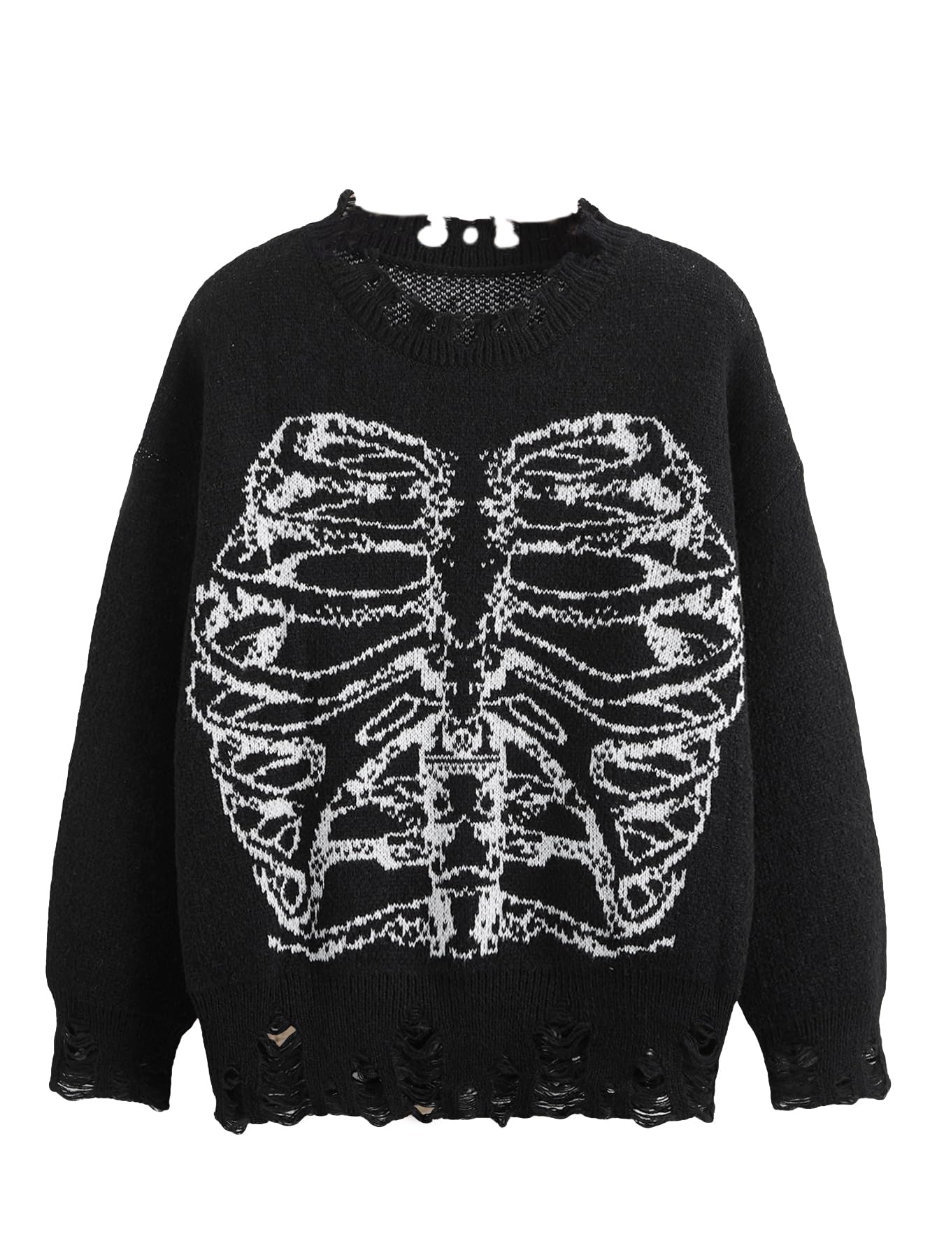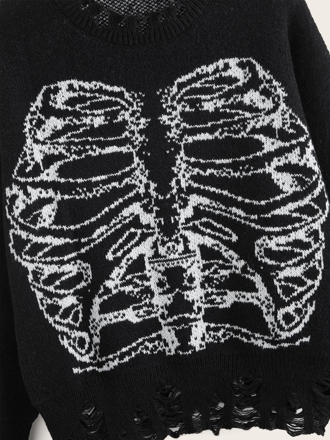 Feature: skeleton pattern, round neck, long sleeve, oversized pullover sweater for women