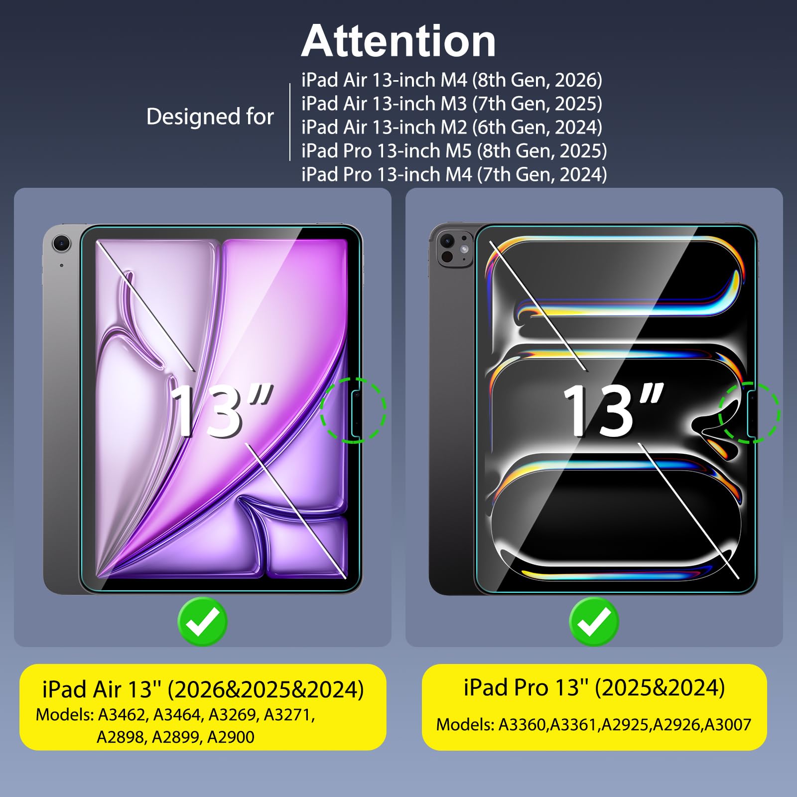 Compatibility: Fit for iPad Air 13 Inch M4 2026/M3 2025/M2 2024 (8th/7th/6th Generation) & iPad Pro 13 Inch M5 2025/M4 2024 (8th/7th Generation), Not for iPad air 11 inch/iPad Pro 11 inch