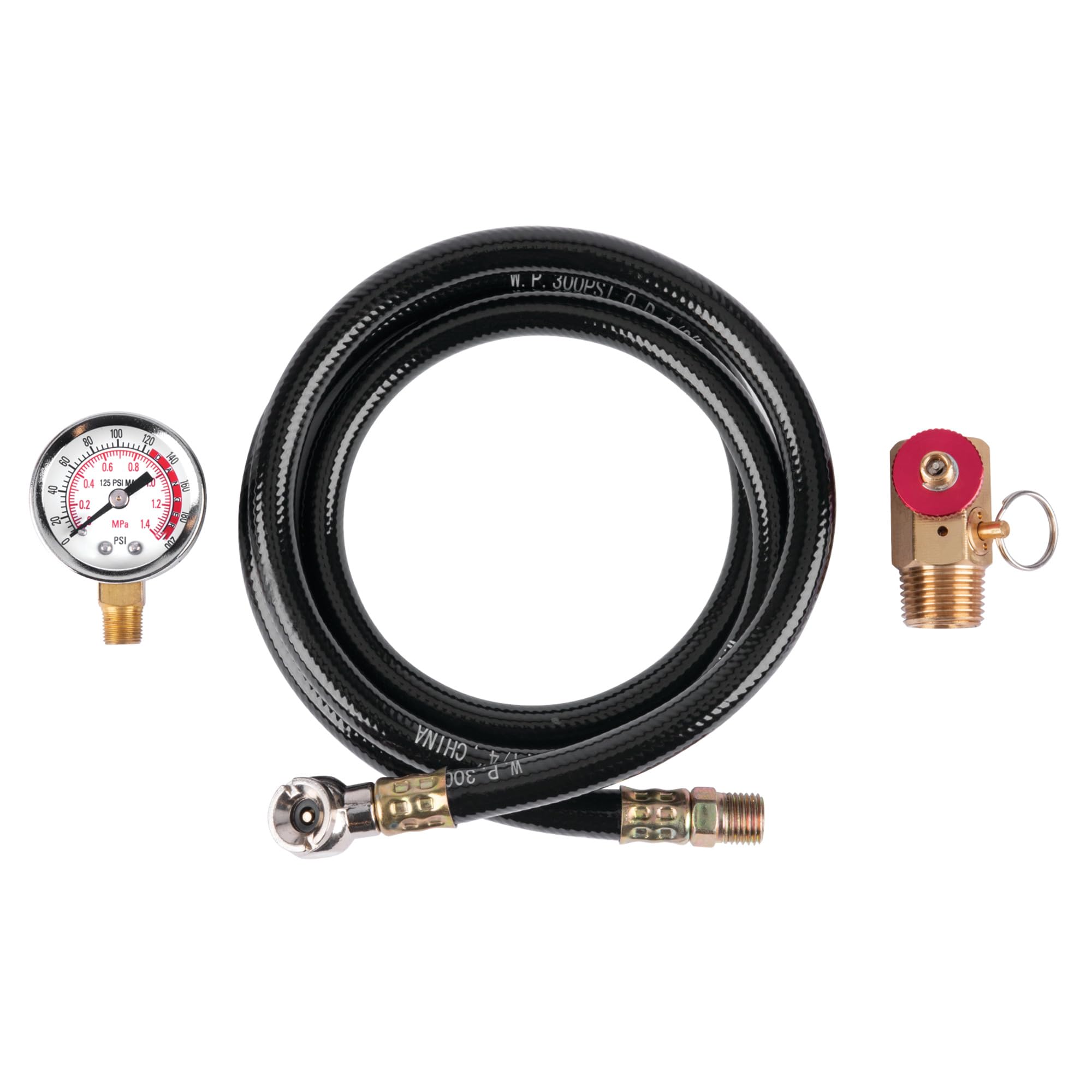 The Performance Tool W10058 Air Tank Repair Kit is an all-in-one solution for repairing your portable air tank, with a Safety Valve, Pressure Gauge, and 4 Foot Air Tank Hose Assembly kit included. The easy-to-read 0-200 psi air tank gauge allows you to monitor the pressure of your compressed air system at a glance, while the heavy-duty brass air tank manifold connector provides a secure and reliable connection. The 4-foot air hose with tire chuck makes it easy to inflate tires and power pneumatic tools, with a 1/4 inch NPT connector for a secure and reliable connection. Portable and versatile, the Performance Tool W10058 Air Tank Repair Kit is the perfect addition to keep your compressed air system running smoothly, whether you're using it for home DIY projects, automotive work, or powering pneumatic tools on the job site.