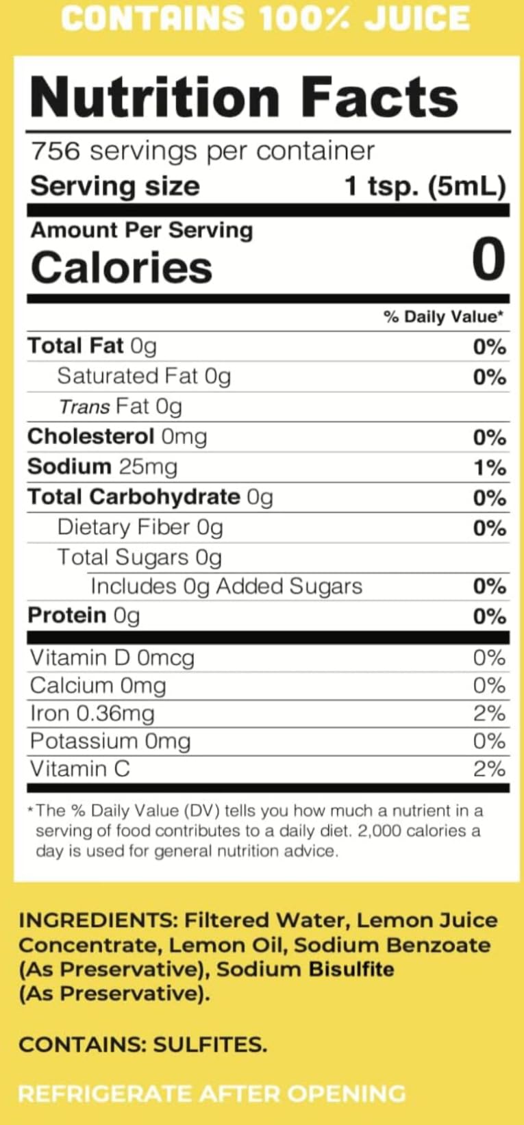 PREMIUM LEMON JUICE - Our Lucy's Lemon Juice is 100% Juice from concentrate with added ingredients which means we use only real and true lemon juice extracted from Lemons + Water (to reconstitute the juice back to the lemons natural strength) + some preservatives and lemon oil to retain long lasting flavor and the advantage of being able to store away lemon juice to use whenever you might need. Perfect for your favorite lemonade recipes.