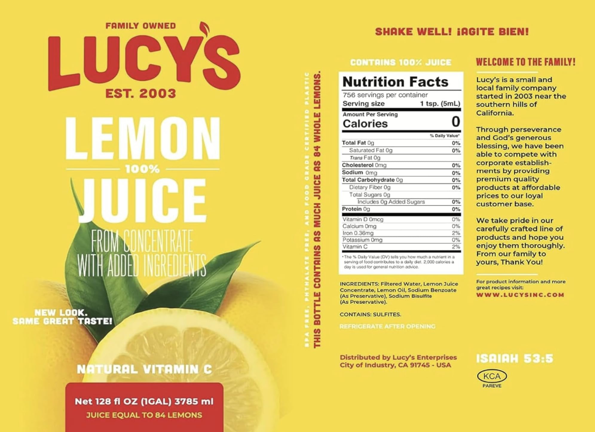 LEGACY MADE LEMON JUICE - Feel the legacy of tradition in every sip as you enjoy the zesty, versatile essence of Lucy's lemons, meticulously prepared by a family deeply rooted in the art of citrus perfection.