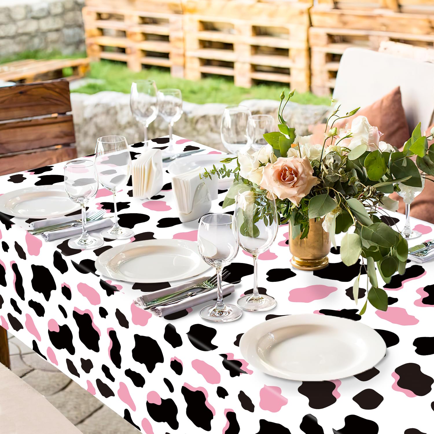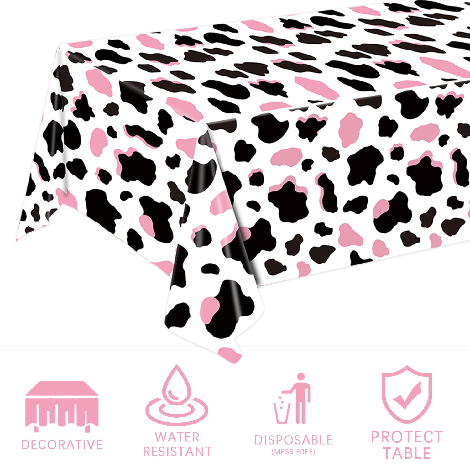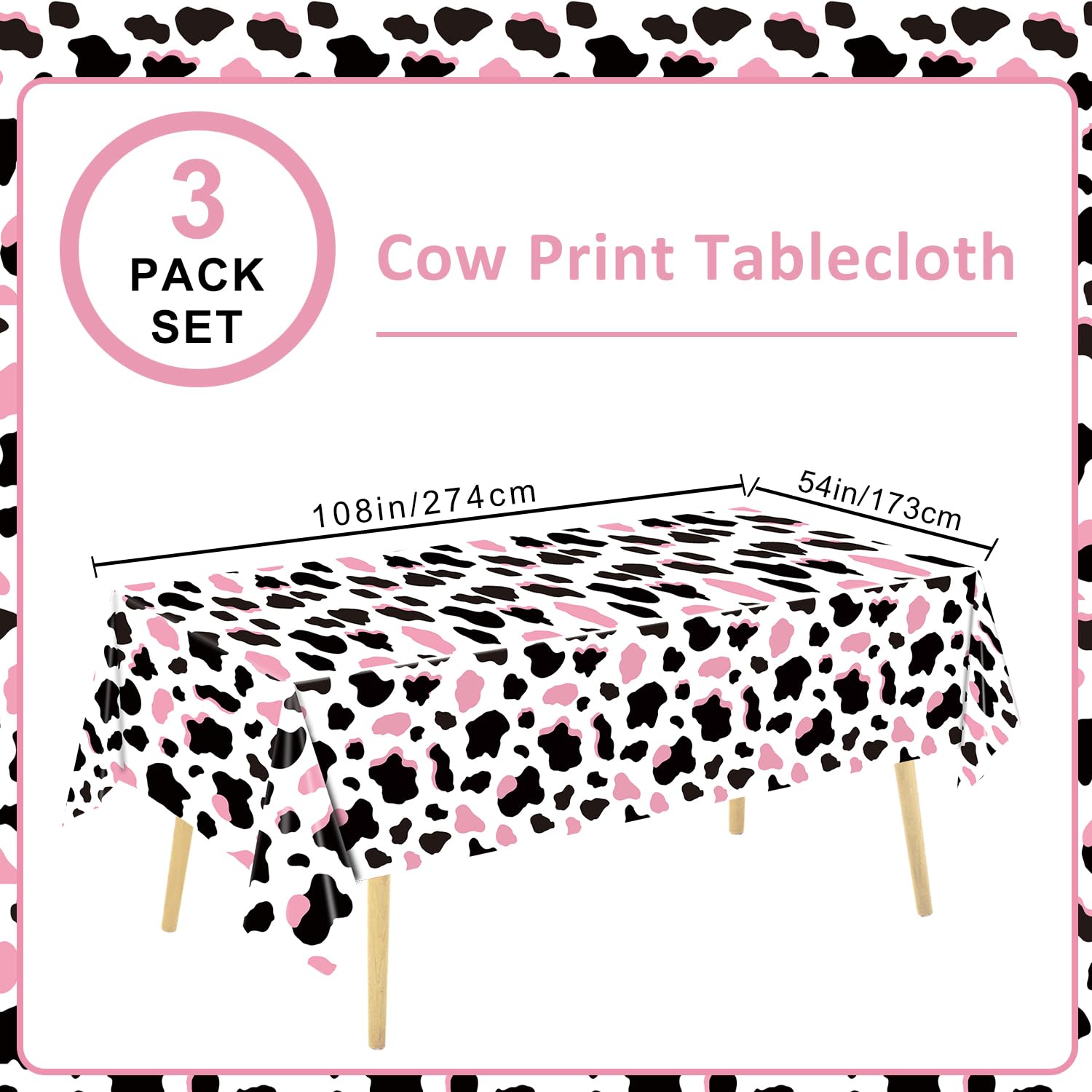 PACKAGE INCLUDES: A pack of 3, 54"x108" pink cow print tablecloths, fitting most tables on the market