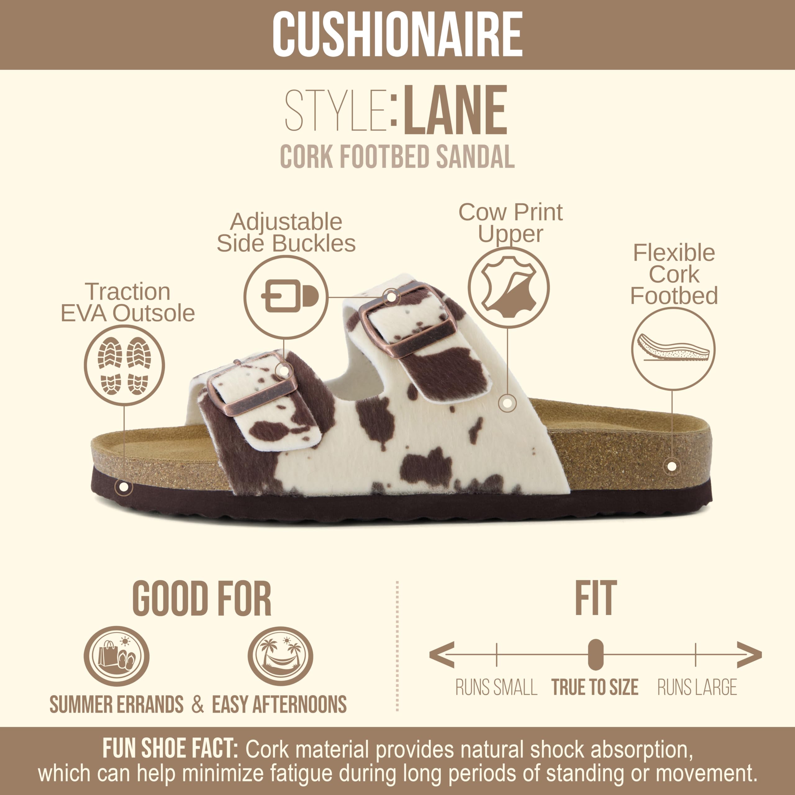 Description Women's Cushionaire comfort Cork footbed sandal. Stay cool with these high quality sandals that will give you comfort throughout your day.