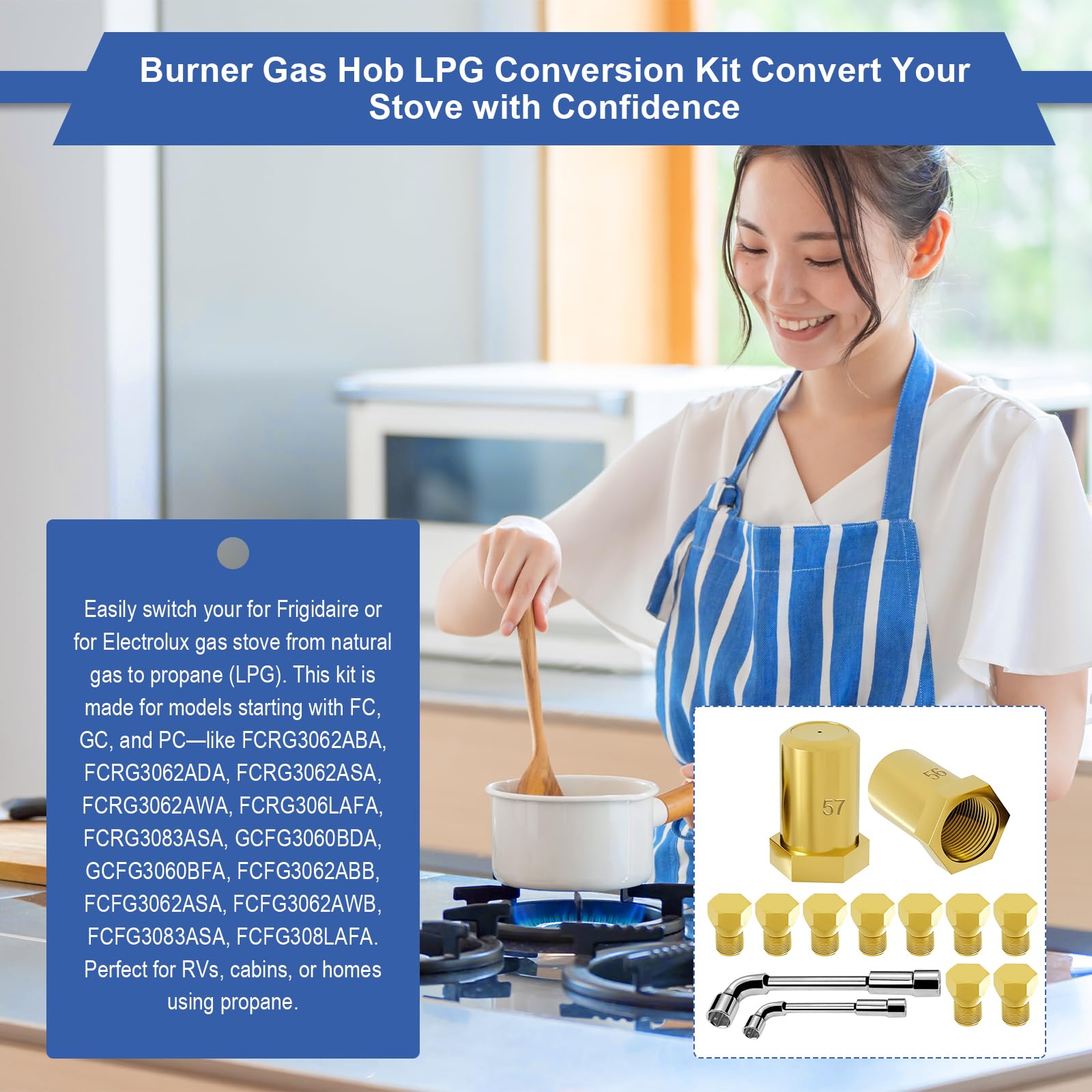 Burner Gas Hob LPG Conversion Kit Convert Your Stove with Confidence:Easily switch your for Frigidaire or for Electrolux gas stove from natural gas to propane (LPG). This kit is made for models starting with FC, GC, and PC—like FCRG3062ABA, FCRG3062ADA, FCRG3062ASA, FCRG3062AWA, FCRG306LAFA, FCRG3083ASA, GCFG3060BDA, GCFG3060BFA, FCFG3062ABB, FCFG3062ASA, FCFG3062AWB, FCFG3083ASA, FCFG308LAFA. Perfect for RVs, cabins, or homes using propane.