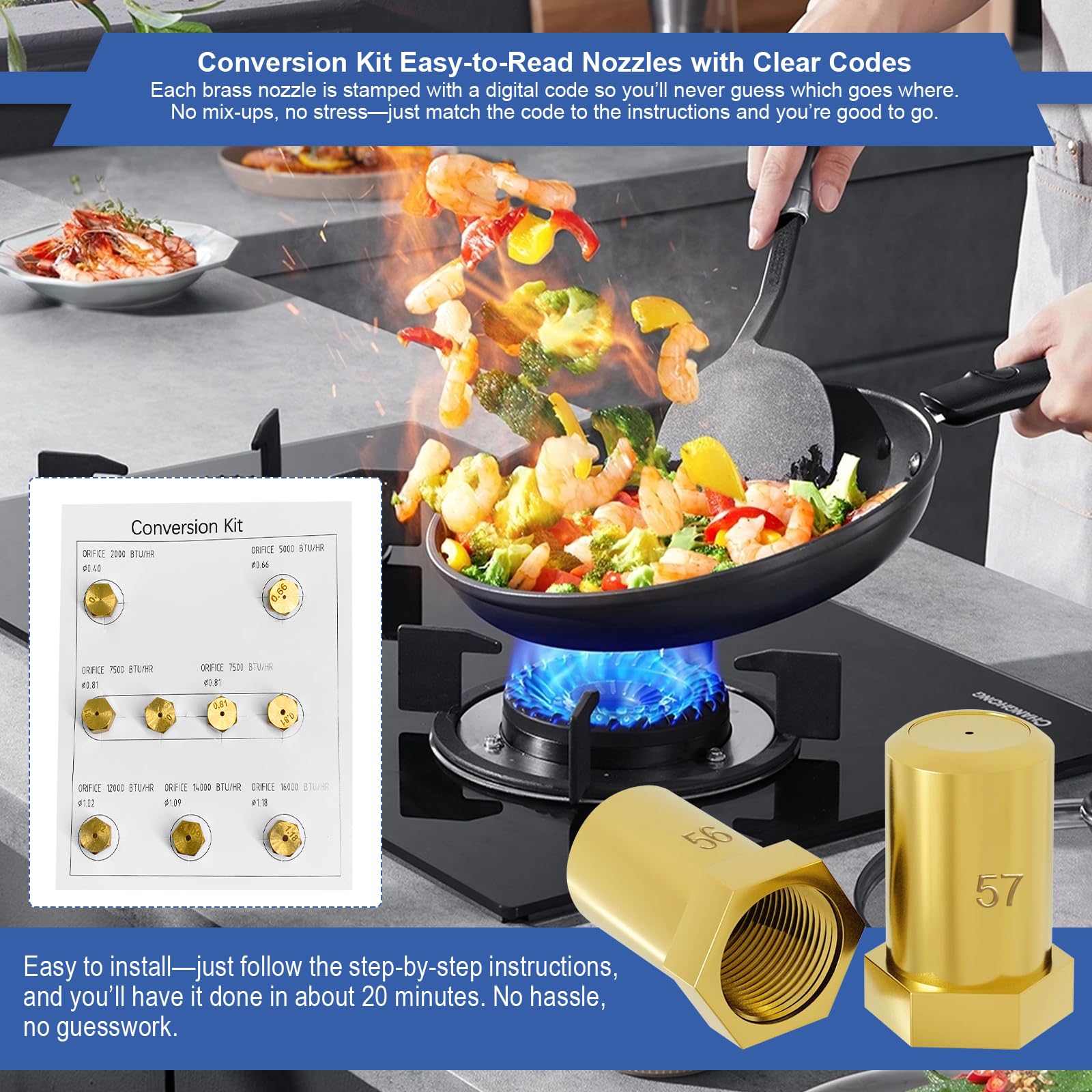 Conversion Kit Built to Last – 100% Solid Brass Nozzles: Made from high-quality brass that’s corrosion-resistant and handles heat like a champ. This kit won’t rust or wear down like cheaper alternatives. Tested to meet OEM standards for safe, long-lasting use.