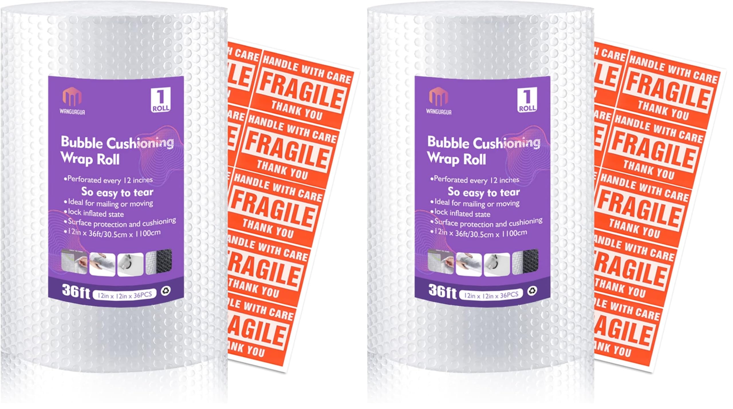 【Saves your time】A roll of bubble cushioning wrap perforated every 12 inches, EACH ONE is so easy to tear! Simply tear along the dotted line, 12 in x 36 ft / 30.5 cm x 1100 cm, 12 in x 12 in x 36 PCS Total