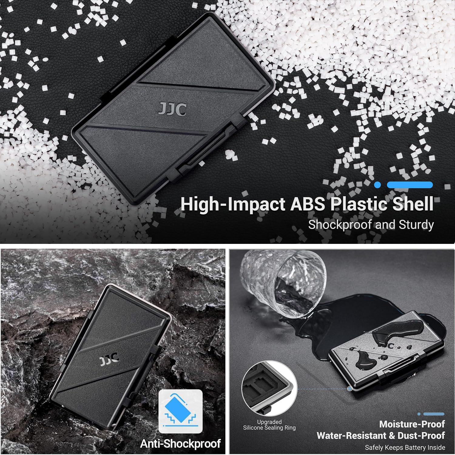 【WATER-RESISTANT&ANTI-SHOCK】:High quality ABS material, strong and durable.The memory card storage box sealing ring is made of advanced silicone.If your backpack is wet by rain, water resistant is the key.