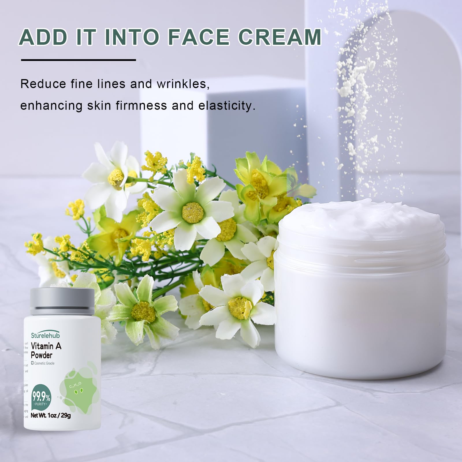 Homemade Skincare Products:You can use vitamin A powder to make face cream, serum, lip balm, face mask, eye cream, body lotion, toner, hand cream and more.