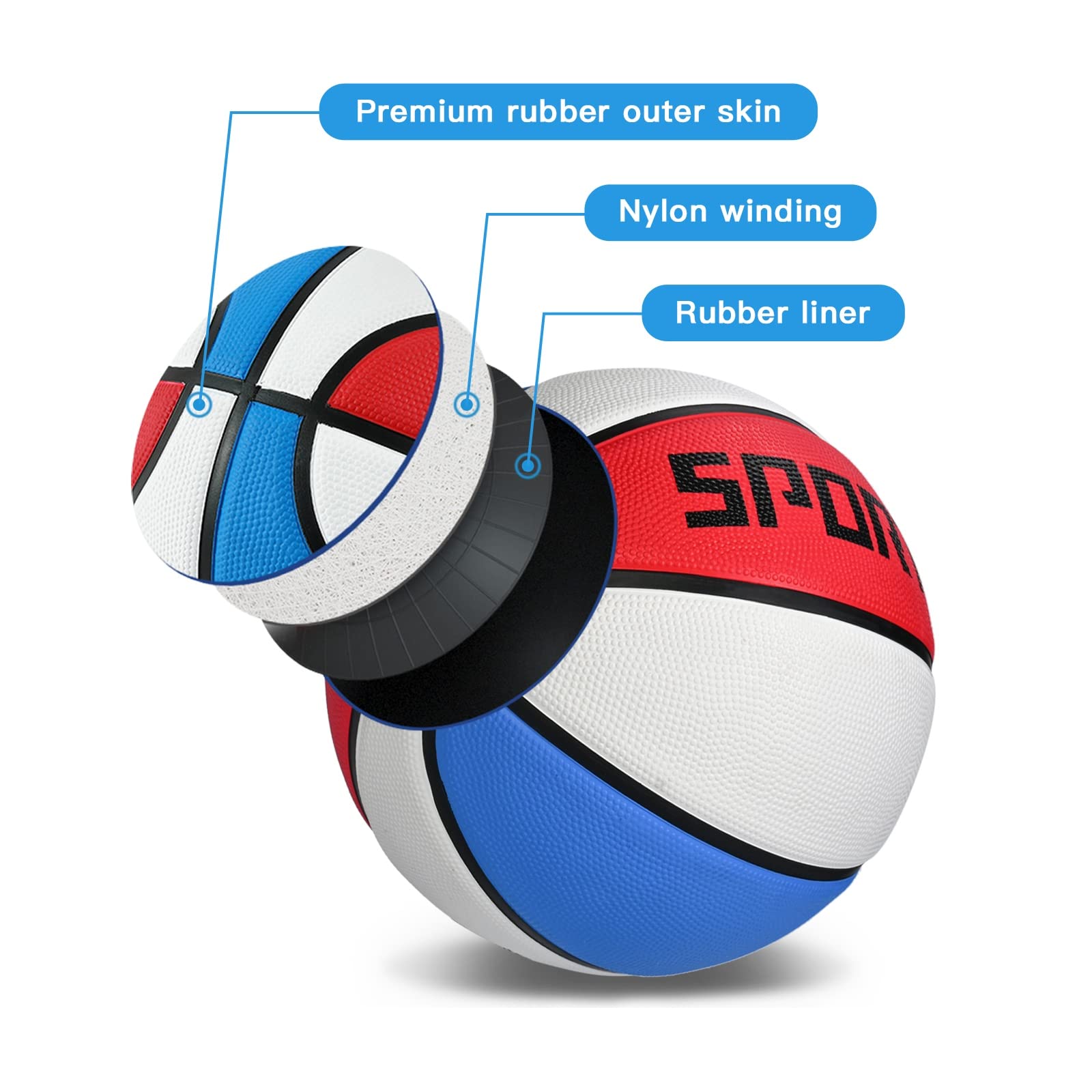 IDEAL GIFT CHOICE: Our foam rubber basketball designed with classic Red + Blue + White color, which is eye-catching to kids, also the SPORTS logo is universal and classic. Perfect choice for sending to boys and girls as as a gift on birthday, Christmas Day and other festive occasion.