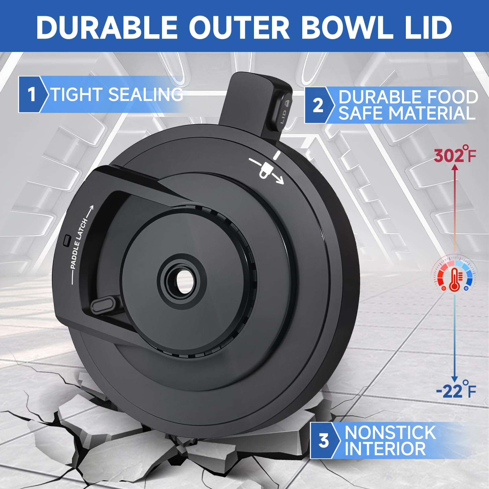 Easy to install and clean: Outer Bowl Lid can be installed in seconds without complicated construction and installation procedures, and the surface is smooth and not easy to leave food residues.(NO Paddle)