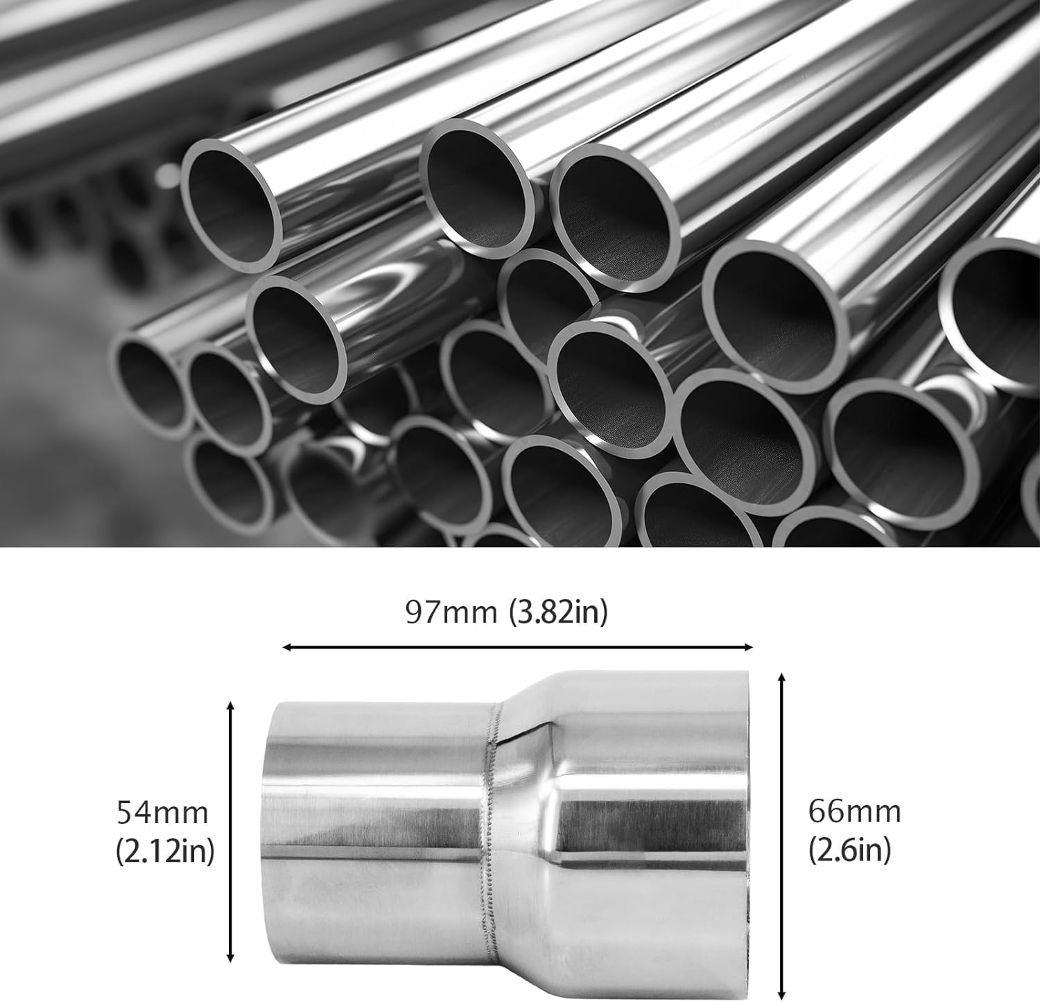 【 Material】: The 2" ID 2.5" ID Exhaust Reducer Adapter is constructed with 304 Stainless steel. It is totally rust and corrosion resistant.