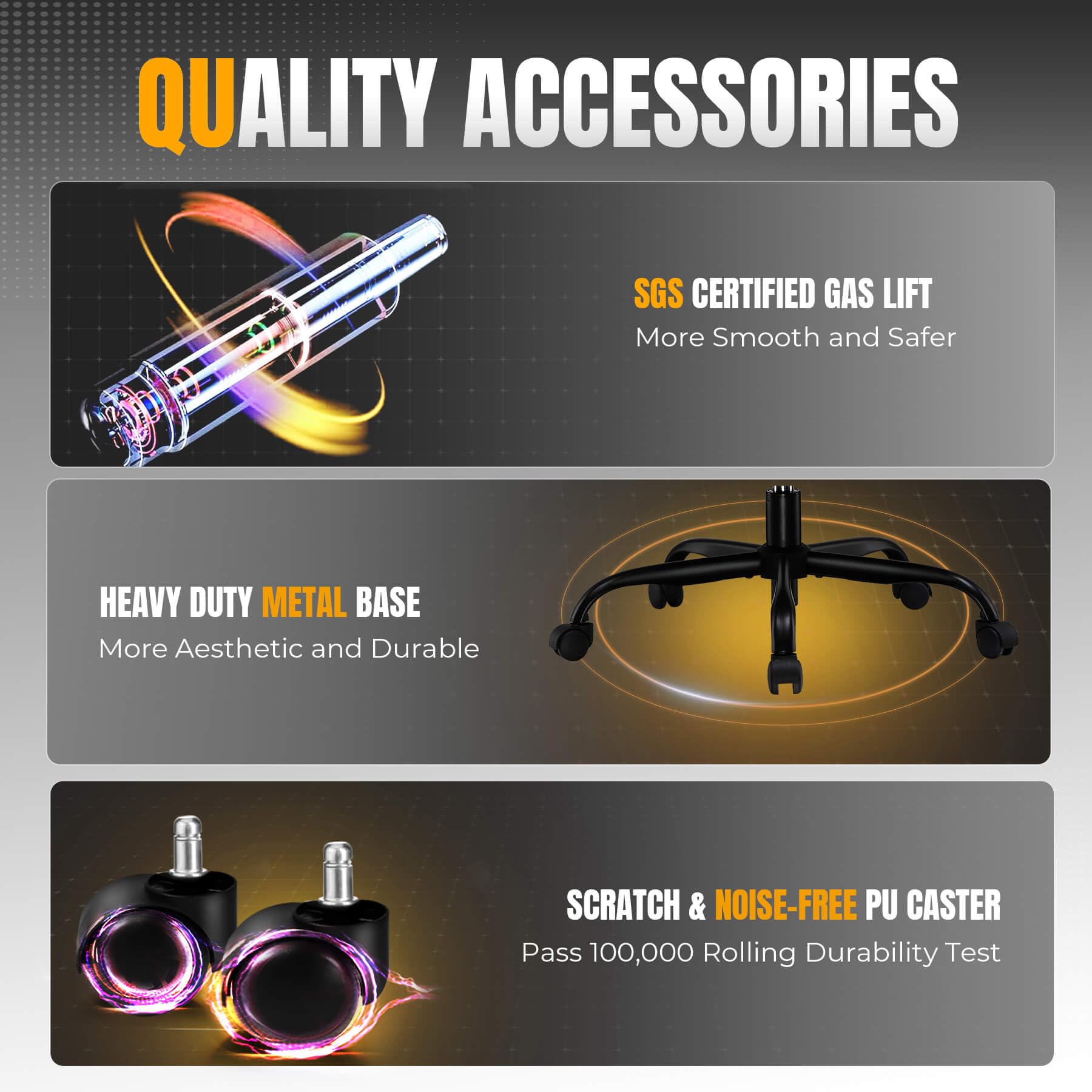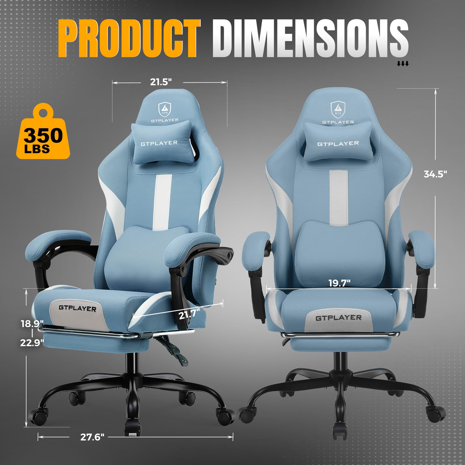 【Heavy-Duty Stability & Silent Rollers】Built on a reinforced metal frame and sturdy metal five-star base for maximum stability. Includes 360-degree silent casters for smooth, quiet gliding. Certified to safely support up to 350 lbs, this gaming chair for adult guarantees durable, reliable performance
