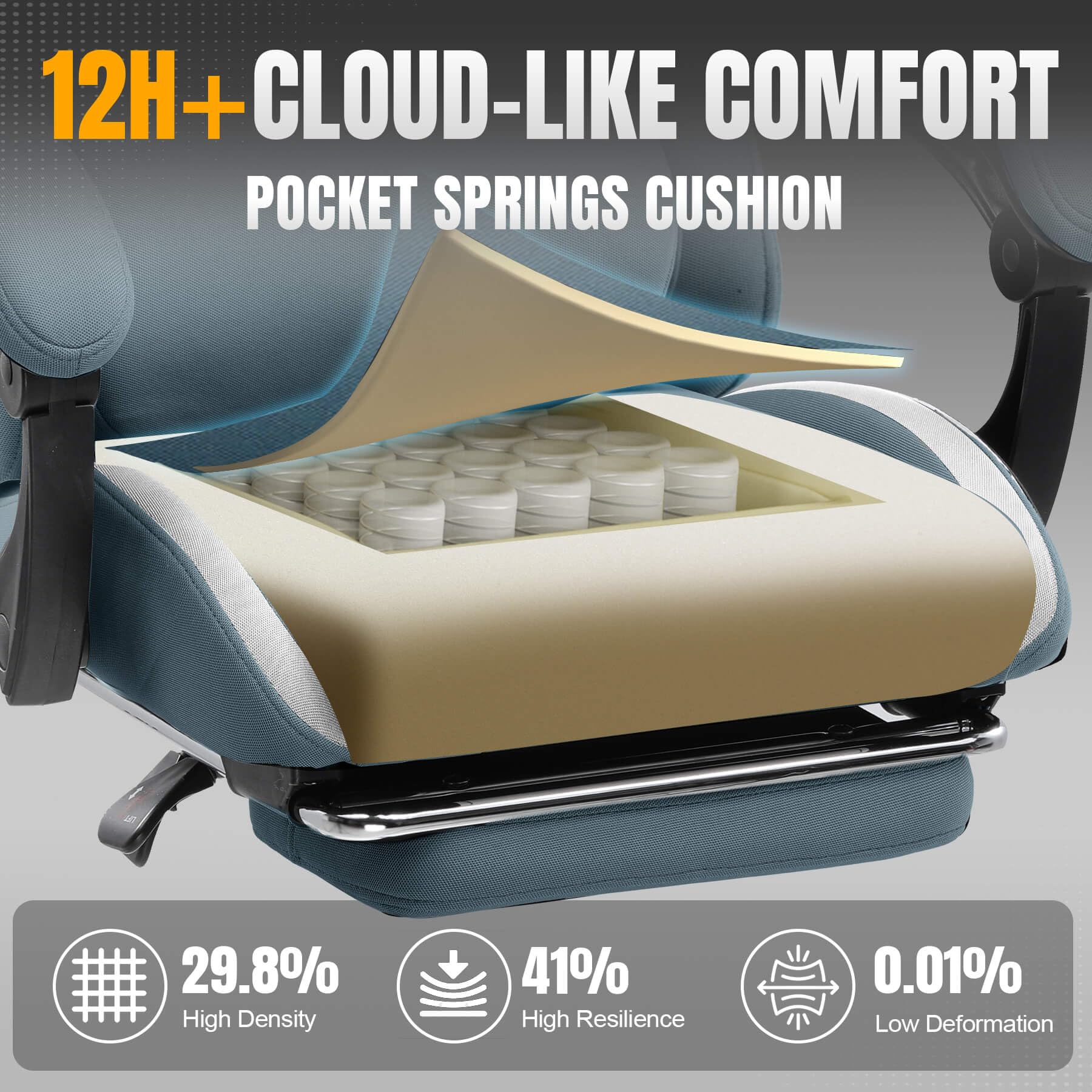 【Cloud-like Comfort with Pocket Springs】Our exclusive spring cushion technology provides cloud-like, responsive comfort. It conforms to your body, offering superior pressure relief and preventing the "sinking" feeling of traditional foam. The result is a buoyant, fatigue-free seating experience