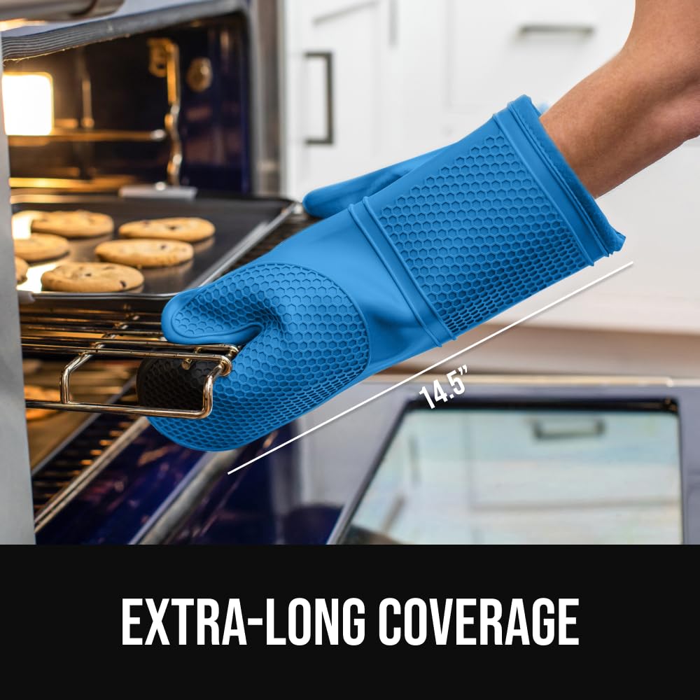 WATERPROOF AND STAIN RESISTANT: no more constantly stained oven mitts; Gorilla Grip Silicone Mitts are both stain resistant and waterproof; spills can easily and instantly be rinsed away under water; hot liquids wonβt soak through and scald your skin as they would with other materials