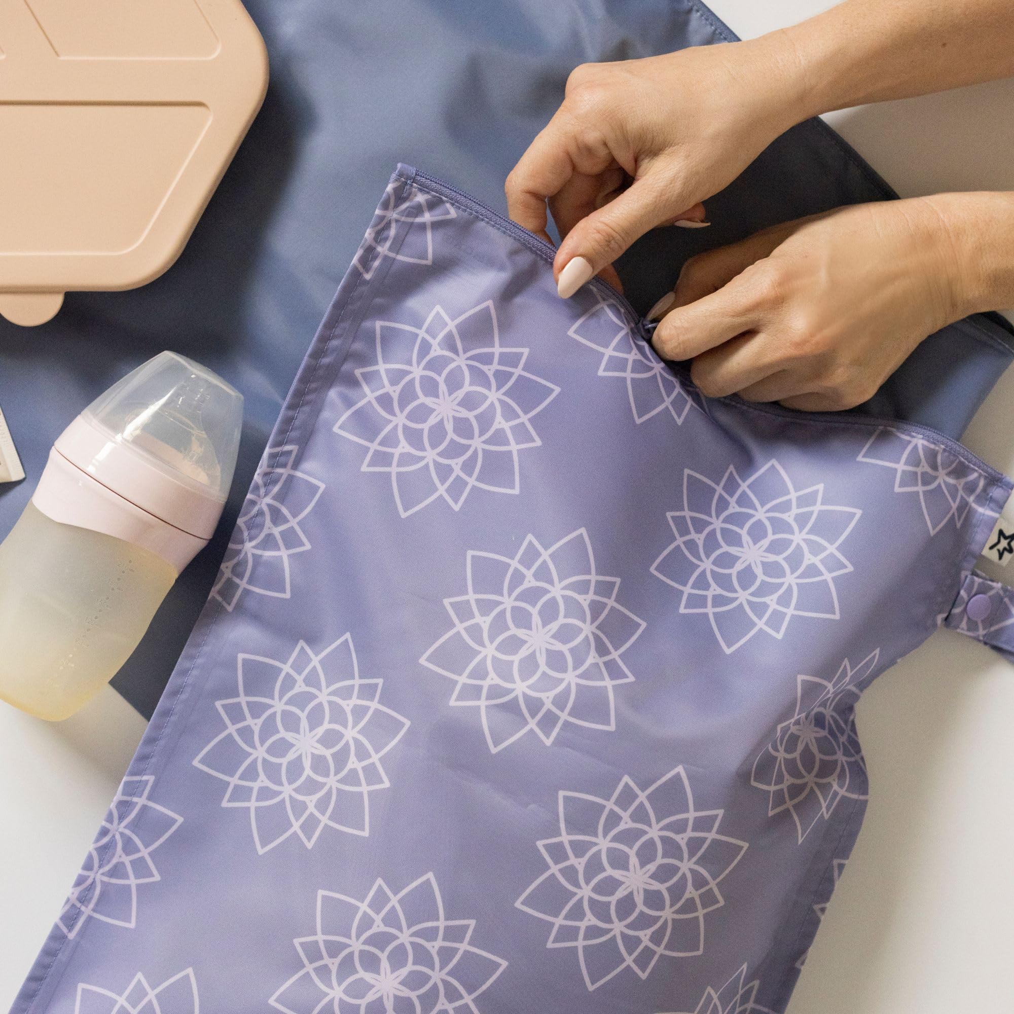 MESS-PROOF STORAGE: This lightweight 12.5” × 16” wet bag keeps wet or dry items such as baby clothes, swimsuits, and daycare items neatly contained. Washable, compact, and built for everyday convenience.
