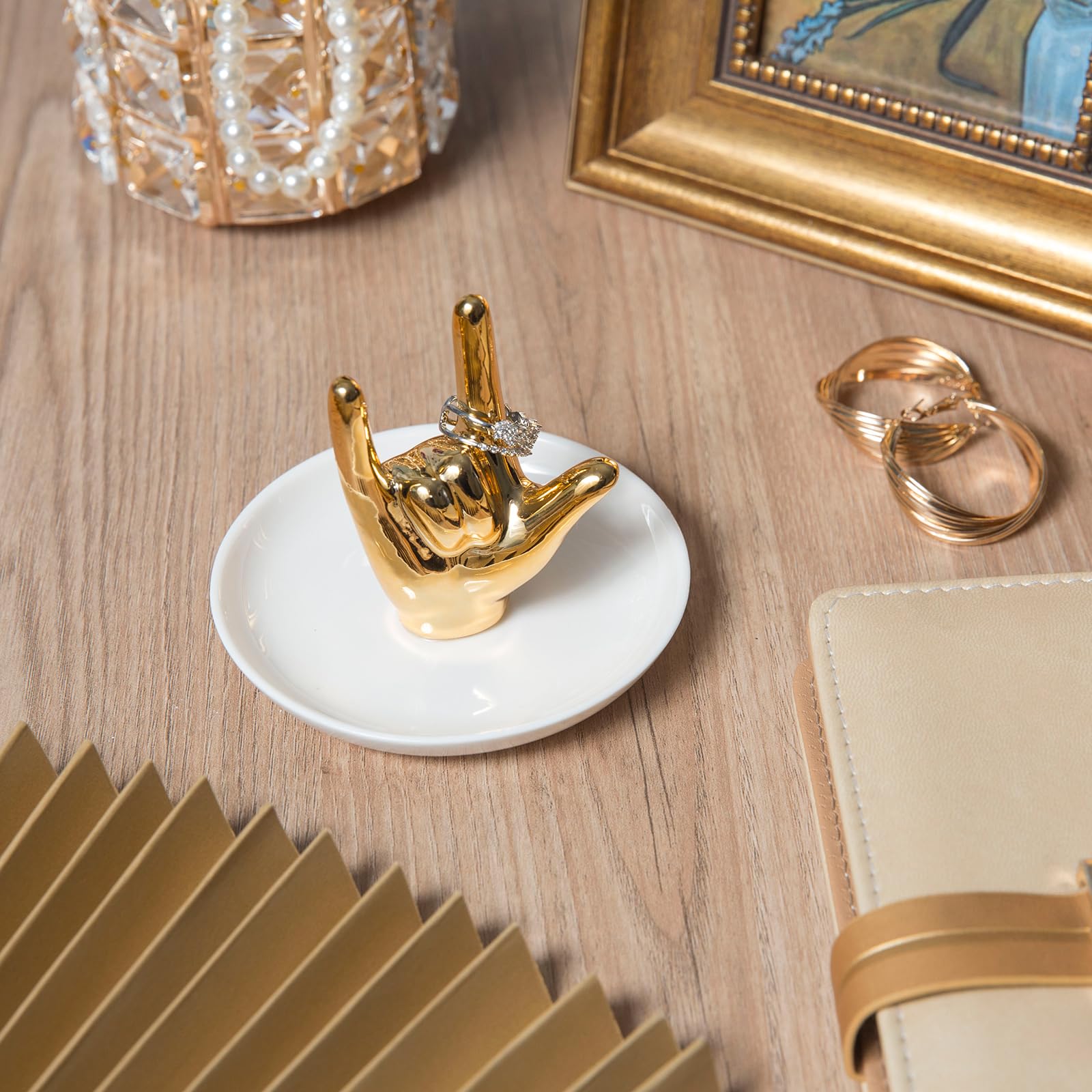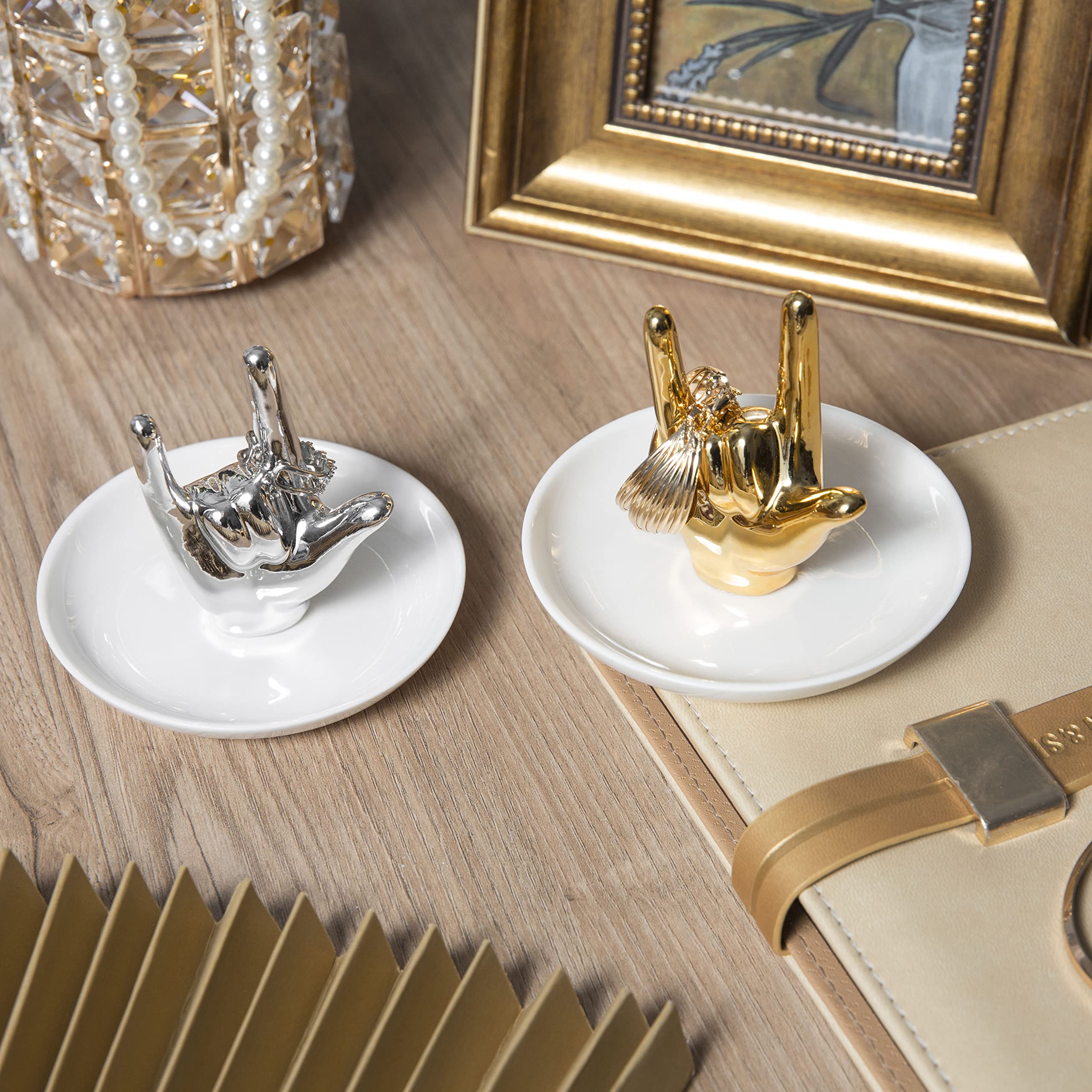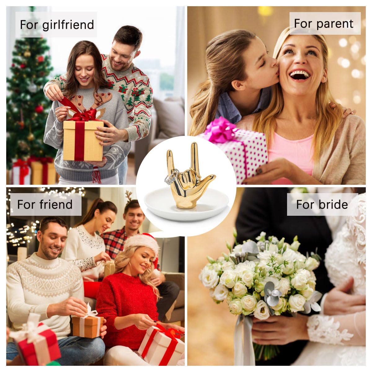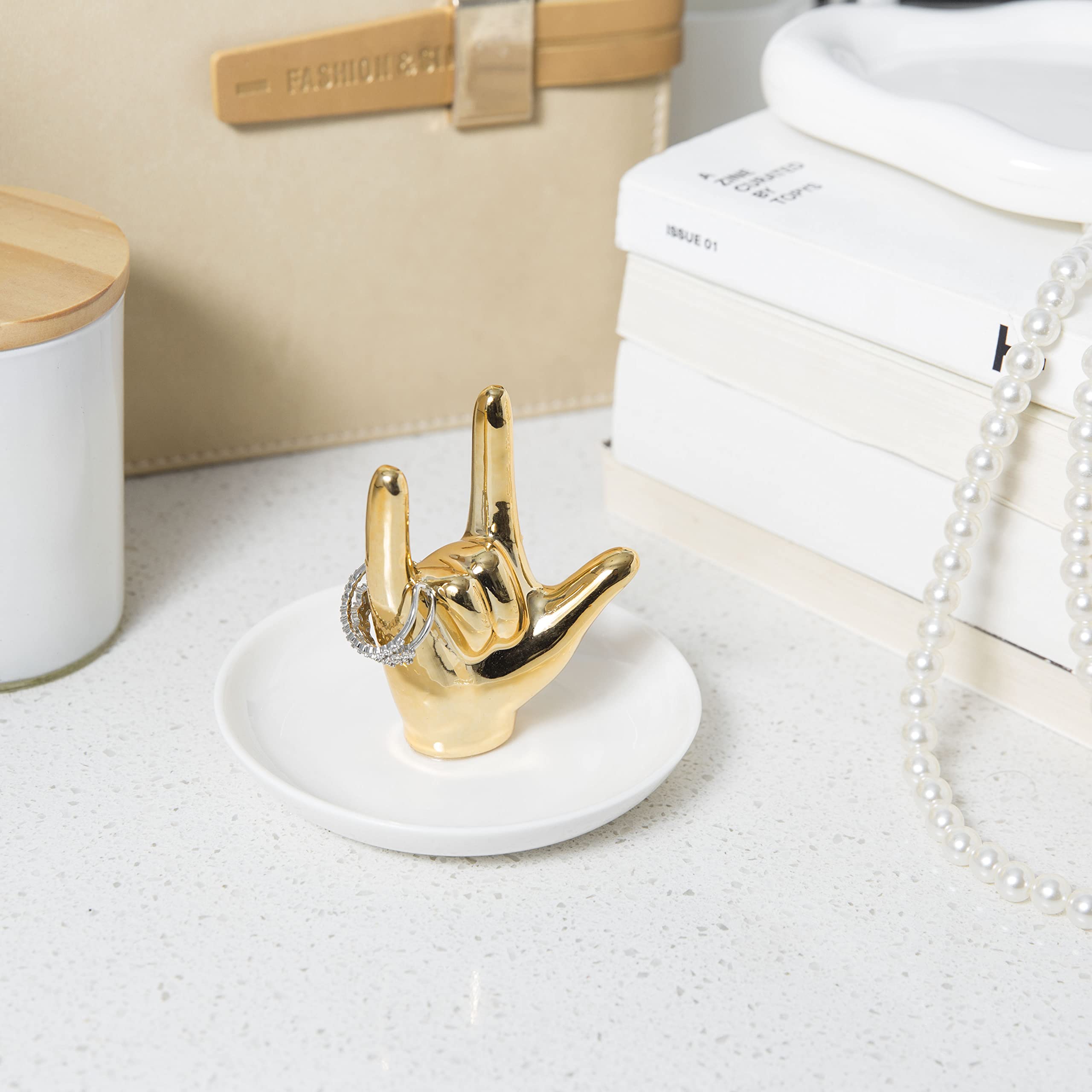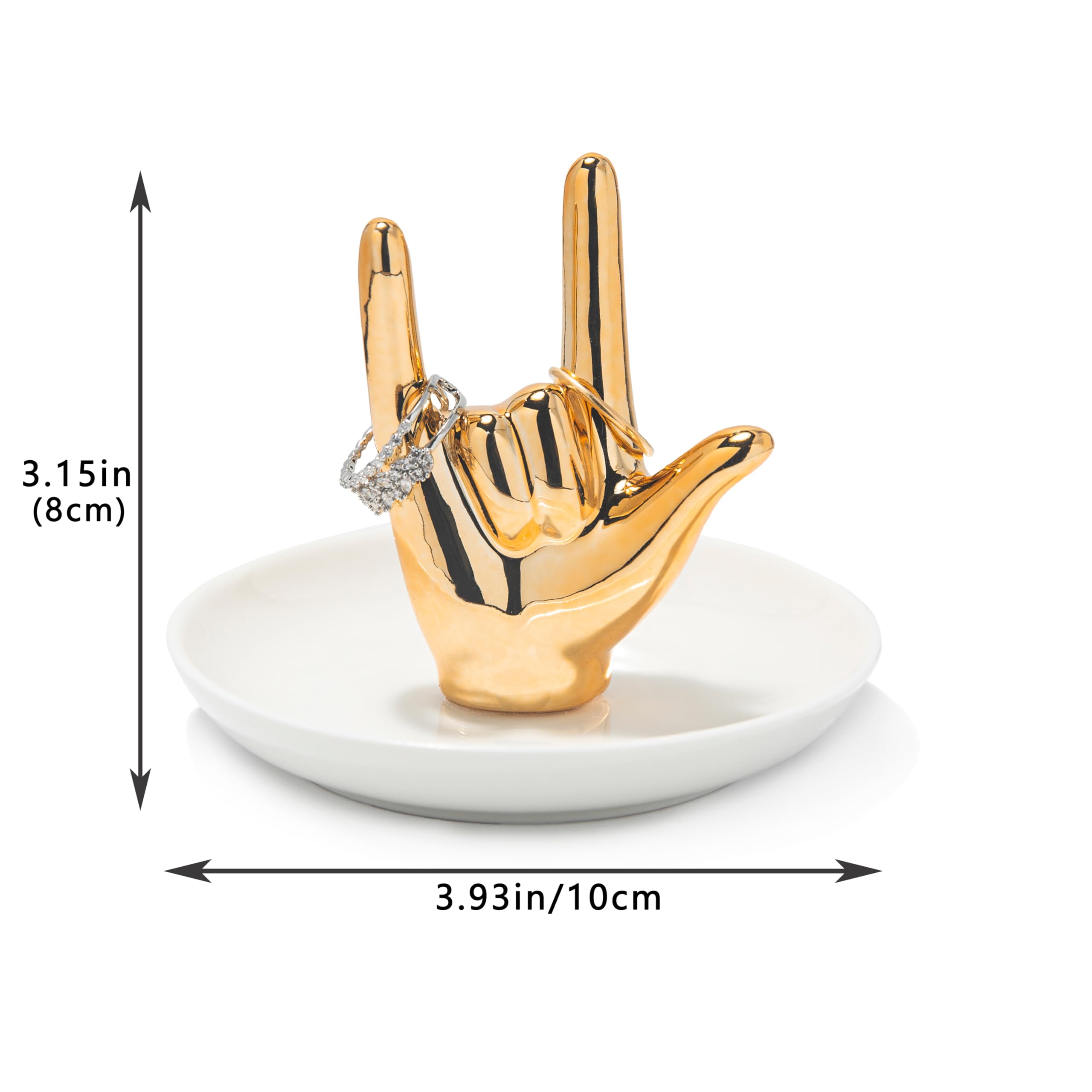 【Multi-Use】Leave the hand ring holder by the vanity sink or kitchen windowsill to collect your rings as you wash your hands or put it on the nightstand or dresser to store your rings, necklaces, bracelets, hair accessories, watches when you get ready for bed. Also, you can as a little key holder for the porch.