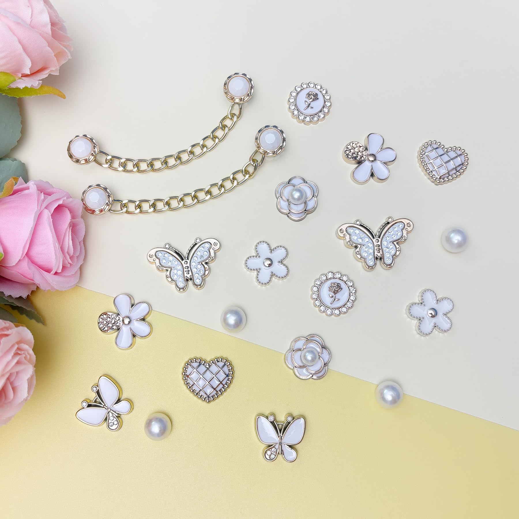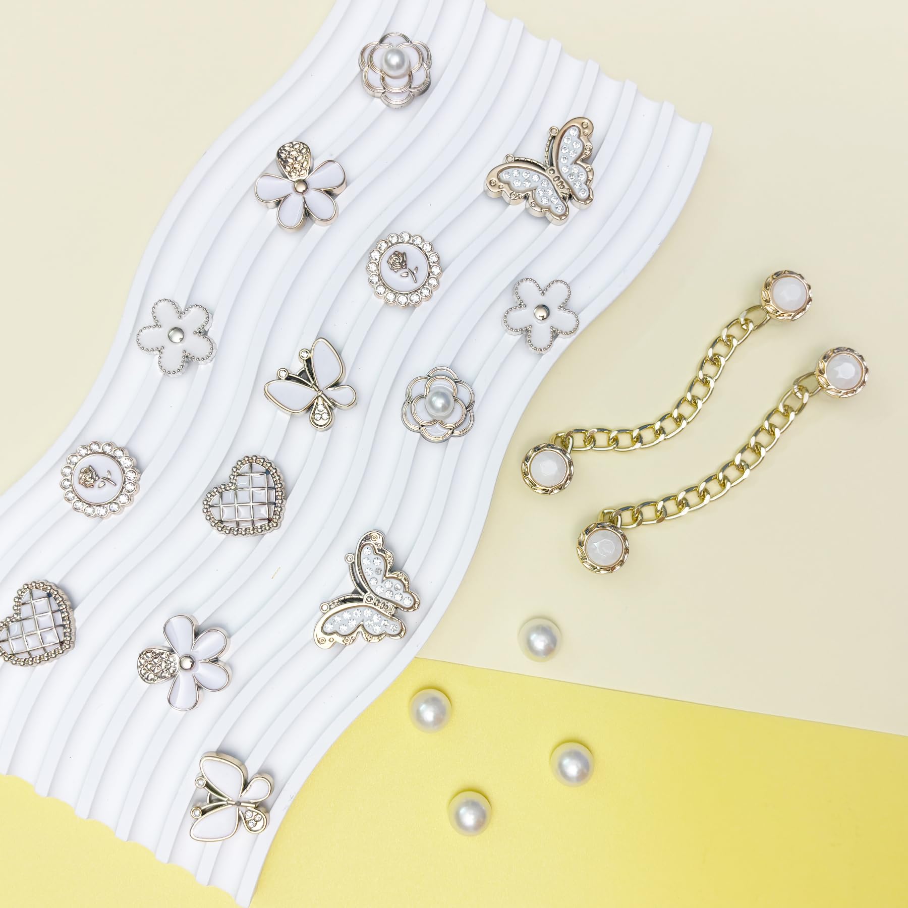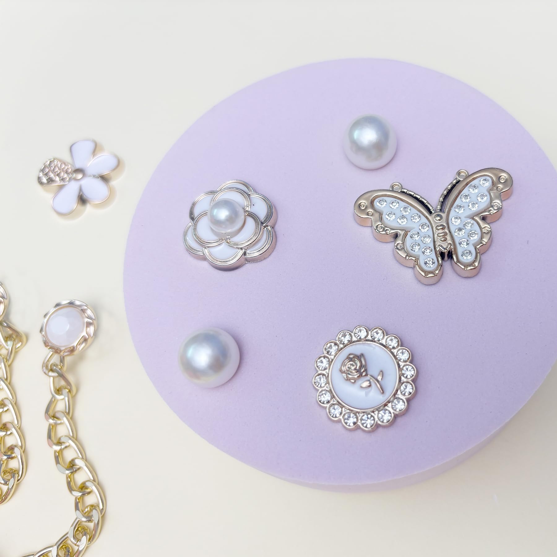 Shiny Gems & Pearls- Bling imitation gems and pearl accessories, with cute butterfly, flowers and other shoe accessories, so that you can be creative and match your favorite style to suit different occasions;
