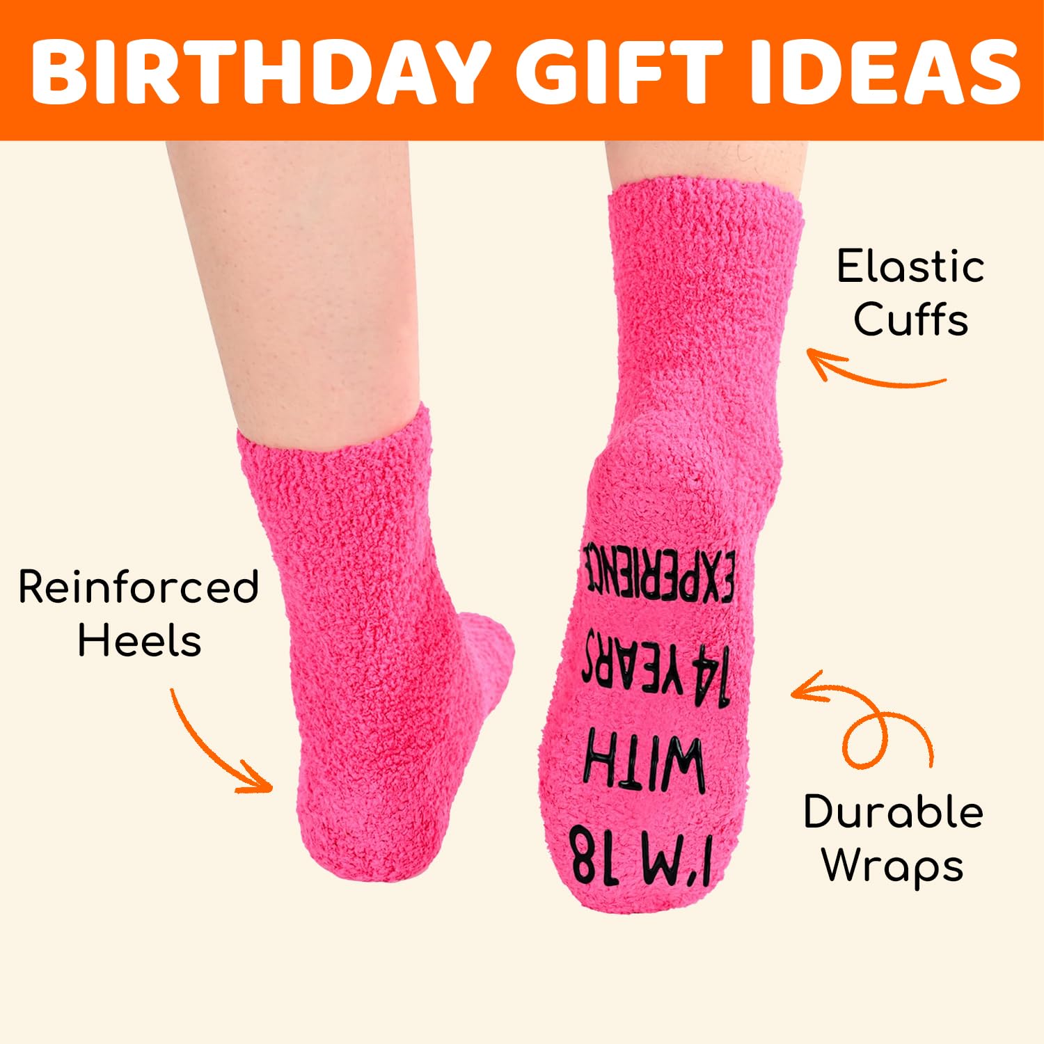 32ND BIRTHDAY GIFT IDEAS: Celebrate with our "I'M NOT 32, I'M 18 WITH 14 YEARS EXPERIENCE" socks, good for any occasion. They are ideal for Birthday presents, Christmas surprises, or playful White Elephant gifts.