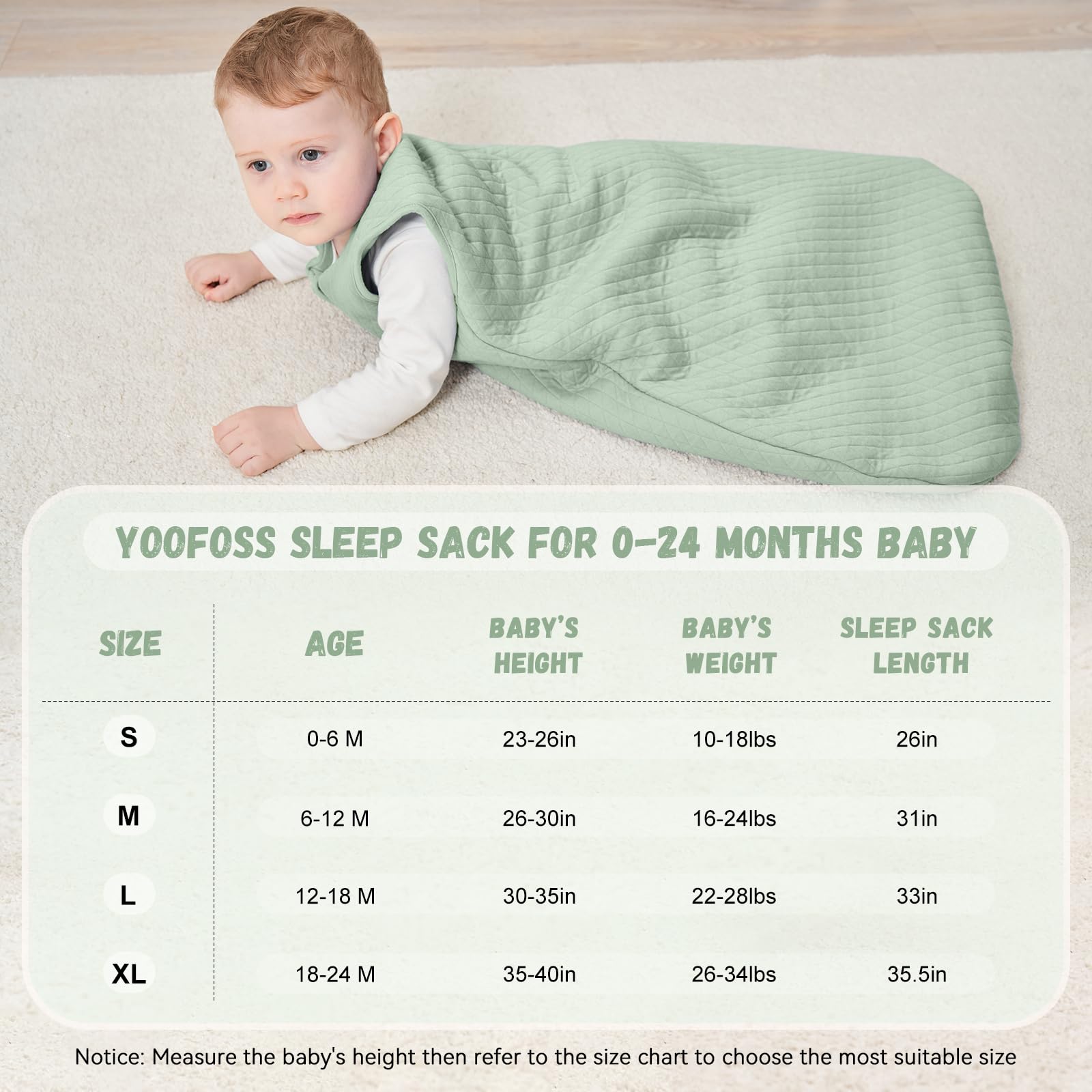 Safety Sleep - Yoofoss baby sleep sack are CPSC-certified for your baby's safety and comfort. The neckline has been carefully sized and numerous experiments ensure a secure and snug fit, preventing the baby from slipping into the sleeping sack. And the loose around the legs to allow for natural hip development.