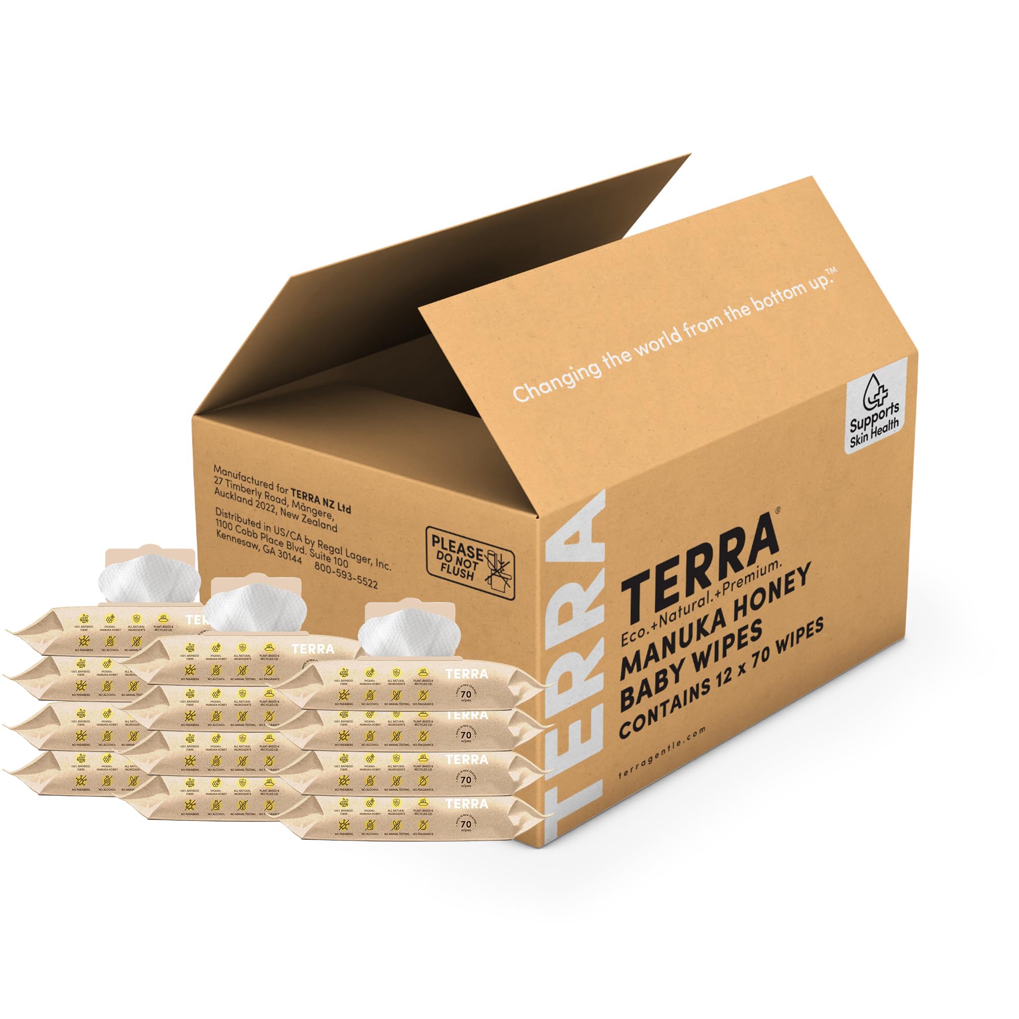 Terra makes products that are better for your baby, and their world, without compromising functionality! Terra plant-based diapers and bamboo baby wipes are the real deal – they perform like you need them to – and are better for the environment. Terra Diapers are 85% plant-based, which is as much plant-based material as we can currently use without sacrificing performance. Our diapers are designed with ultra-soft materials and a gentle, hypoallergenic liner that's free of harmful chemicals, making them safe and gentle for even the most sensitive skin. Our diapers provide a snug fit and reliable leak protection to keep your baby dry and comfortable, even overnight. The unique 360˚ Absorb Pad increases the absorbency area for instant dryness and 3D leak guards prevent leaks and side spills. Within 60 seconds of wetting, the diaper top sheet is dry to the touch, meaning you don’t have to change your little one as often because they’re dry! Even the wetness indicator is plant-based. When you choose Terra, you're not only making a choice that's safe for your baby, but you're also making a choice that's better for the planet.