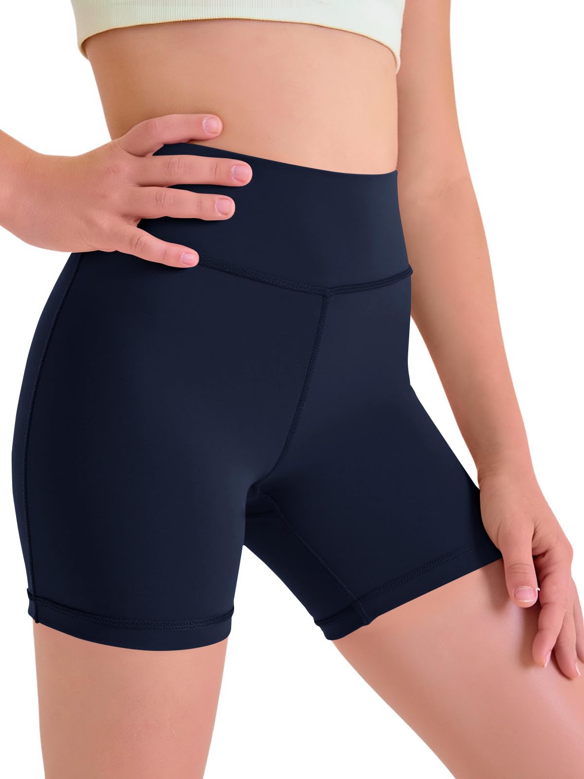 Elastic Waistband: The elastic high-waisted design provides additional coverage around the waist and lower abdomen, offering support during movements and reduces girls bike shorts slipping down. The rigorous knit fabric ensures durability and non see through