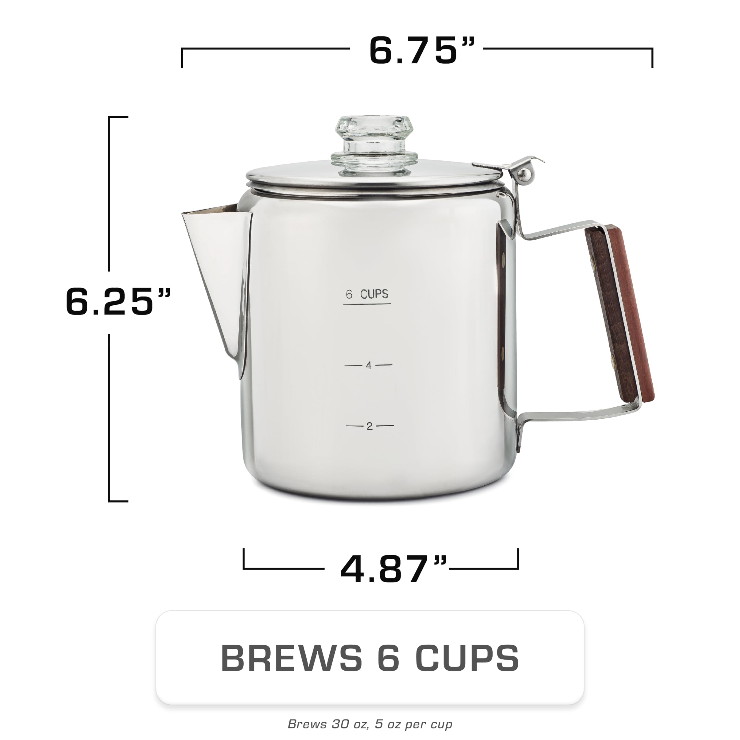 NO ALUMINUM, NO PLASTIC — JUST COFFEE – Some things should never change—like the way coffee is meant to taste. Our percolator coffee pot is crafted from pure stainless steel, with no plastic or cheap aluminum. The glass view top lets you watch every drop brew to perfection. Built for any setting, this coffee percolator stovetop is the choice of campers, travelers, and home brewers alike. A stovetop coffee maker that delivers bold, full-bodied flavor, cup after cup.