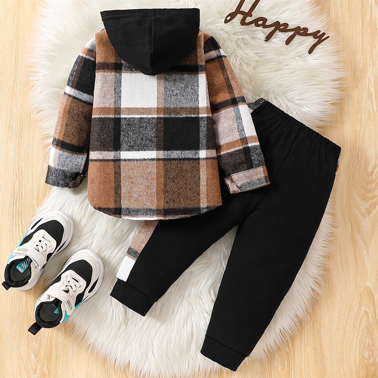 【Cute & Stylish Design】: Toddler Baby boy clothes set with classical plaid colorblock hoodie with quality button closure design, elastic waistband sweatpants match with letter printed , easy to put on / off. Fashion style will have your little boy up on the latest trends and he will get a lot of compliments.