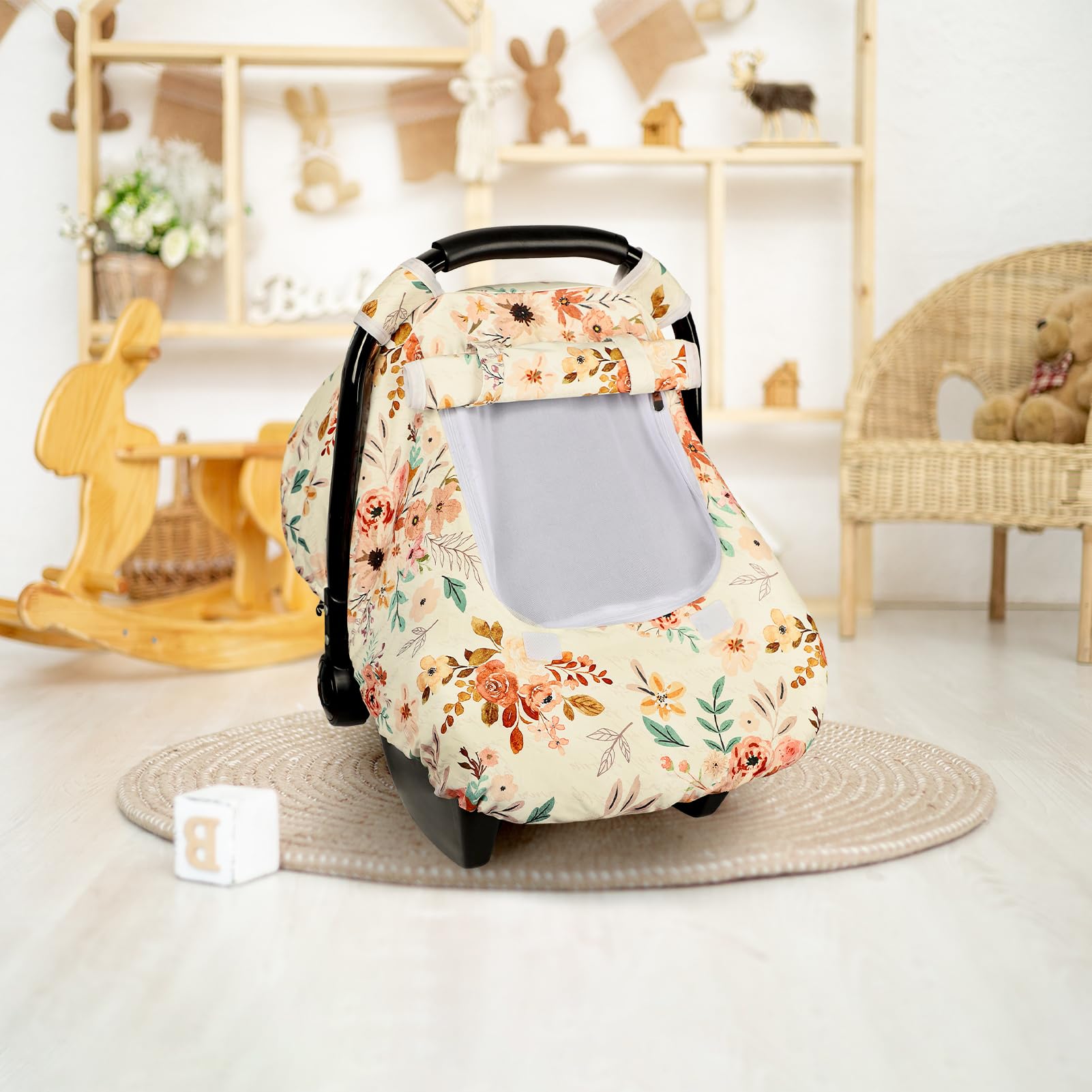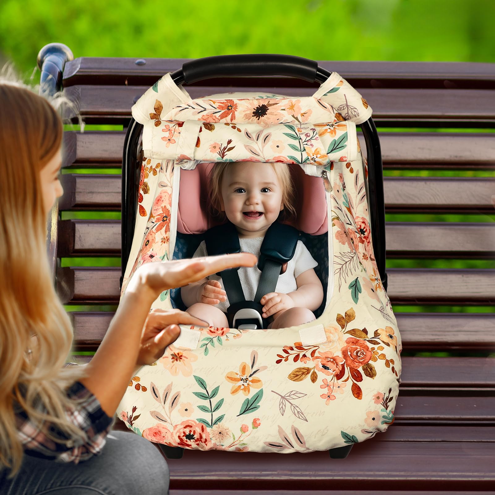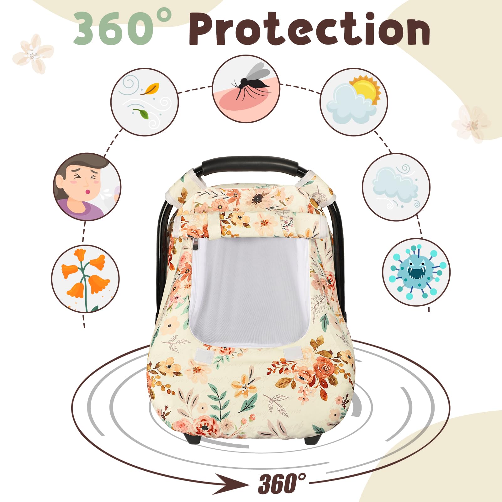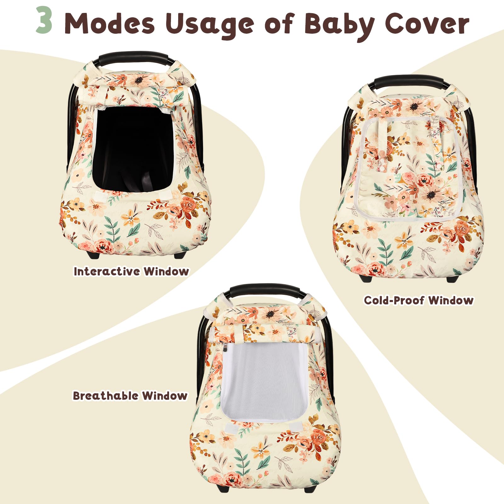 3 Window Modes: Our infant car seat cover has 3 window modes, full coverage mode can keep winter wind from blowing in; the mesh windows are ventilated; the windows that fully open are designed to allow mom to interact with her baby
