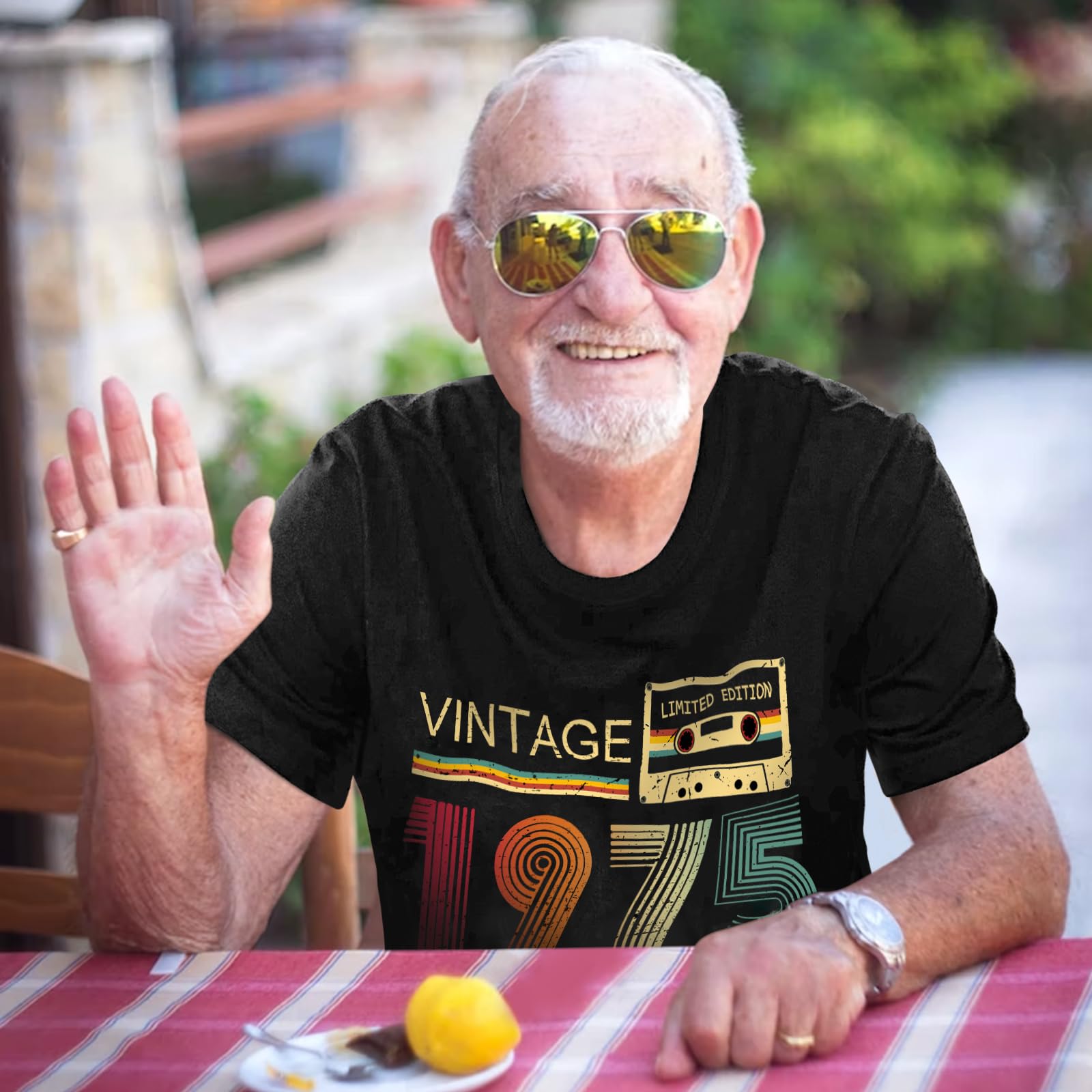 50th Birthday Gifts for Men Fathers Day:1975 tshirt makes a great men's 50th birthday gift ideas, Perfect for a 50th birthday party, dad Fathers Day gifts, Fathers Day Gifts for Men, anniversary gifts for dad, Father's day gifts for dad. 1975 tee shirt can be gifts for husband 50 years old, brother gifts, best friend gifts, gifts for son, dad, step father in law. The vintage 1975 design really make this t-shirt a fun birthday gift.