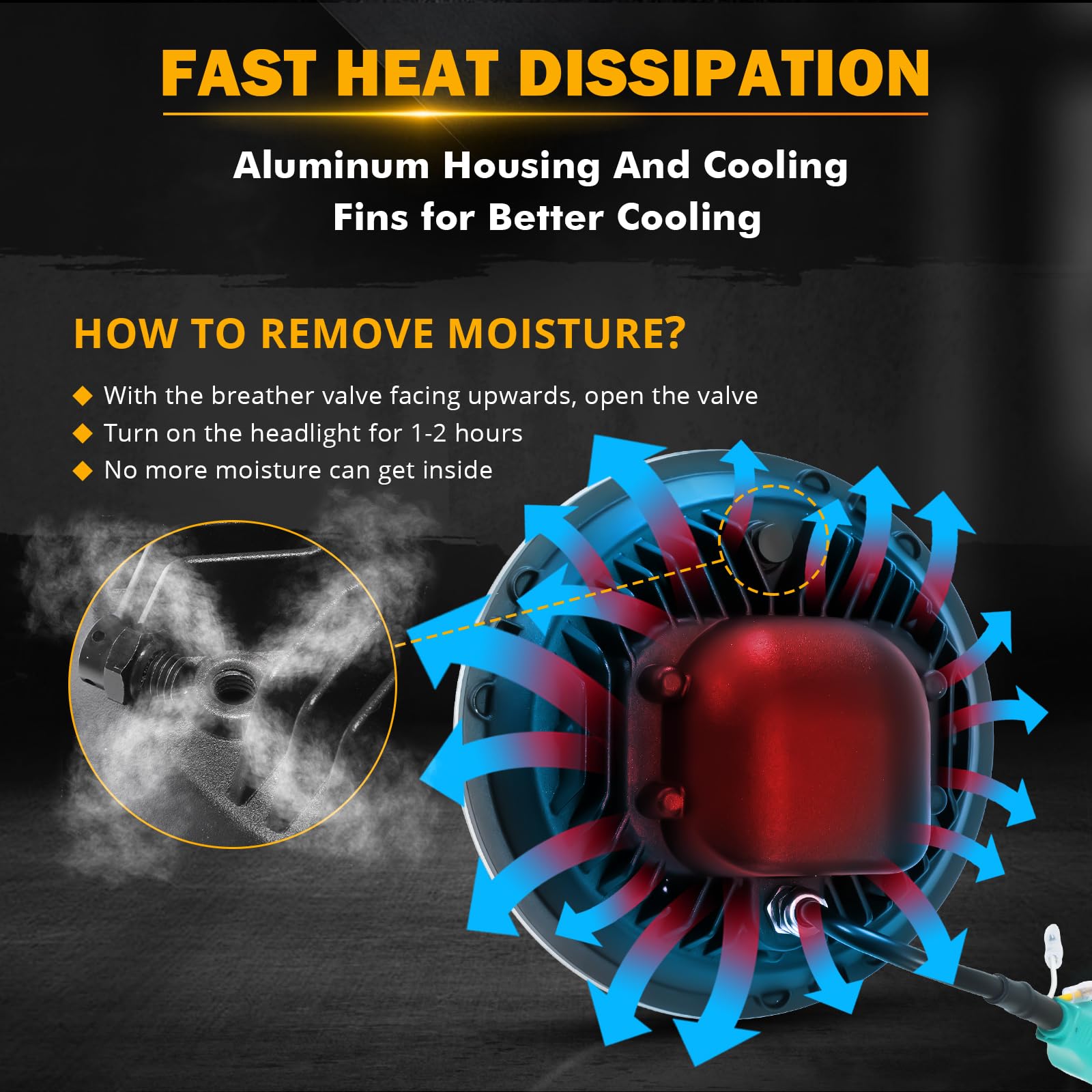 【BUILT TO LAST】With an IP67 waterproof rating, this fully sealed 7 inch LED headlight can withstand any harsh conditions. Its PC lens ensures better light transmission and is shatterproof and scratch-resistant. The aviation-grade aluminum shell and built-in heat dissipation module ensure a longer lifespan of over 100,000 hours. Even after a decade, it'll still shine as bright as new. Moreover, our headlights come with an integrated EMC anti-flicker that effectively guarantees no interference.