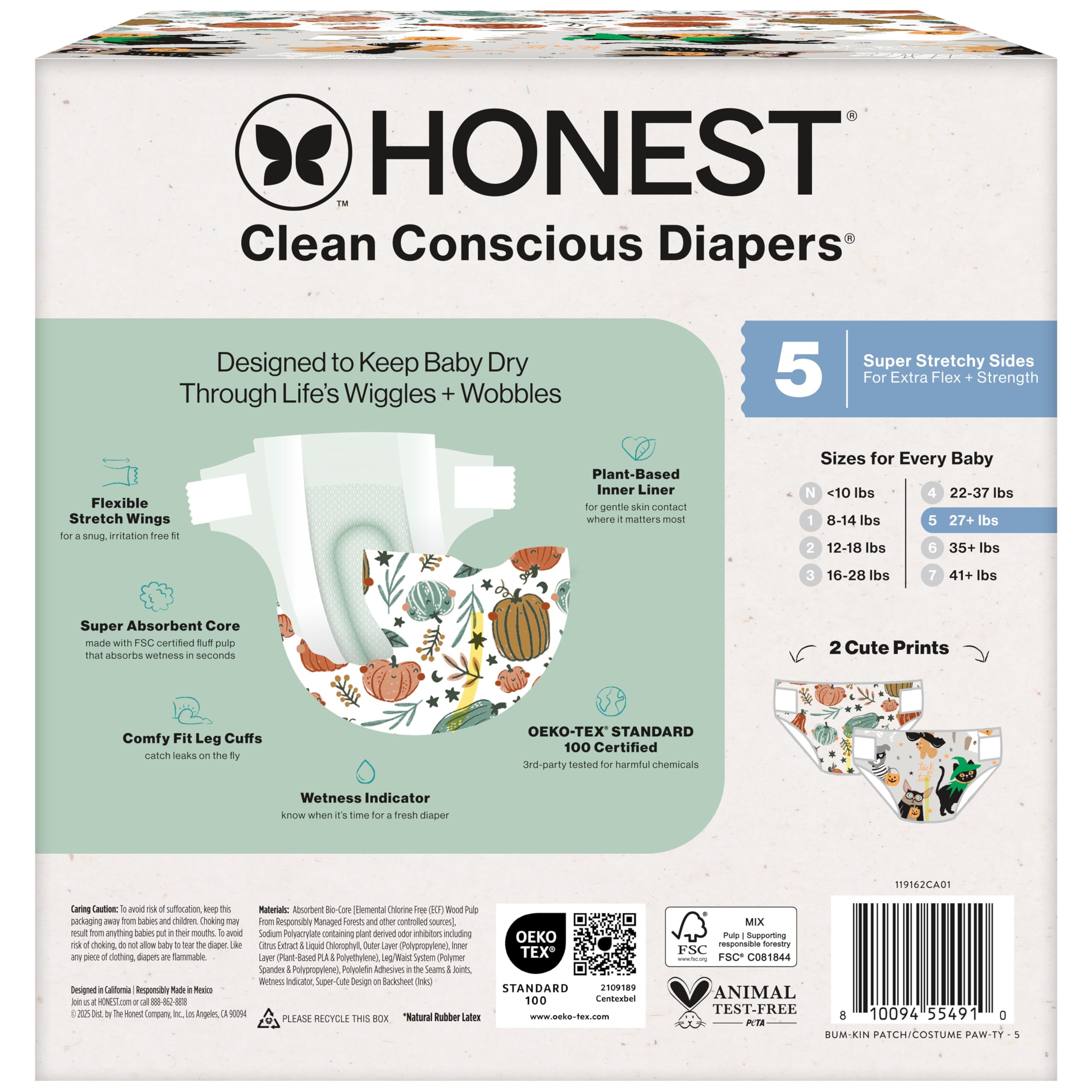 Designed to protect delicate skin, Honest Clean Conscious Diapers keep baby comfortable and dry through all the wiggles and wobbles! Our softest diaper yet delivers up to 100% leak protection with Comfort Dry Technology. The hypoallergenic, plant based inner liner, flexible stretch wings, super absorbent core, and channel technology provide a comfy, secure fit for all ages and stages. Because safety is top priority, these diapers are OEKO-TEX STANDARD 100 Certified, a 3rd party that tests for 350 harmful chemicals, and made with FSC Certified Fluff Pulp and other controlled materials. And for cuteness overload, each diaper features a super cute print!