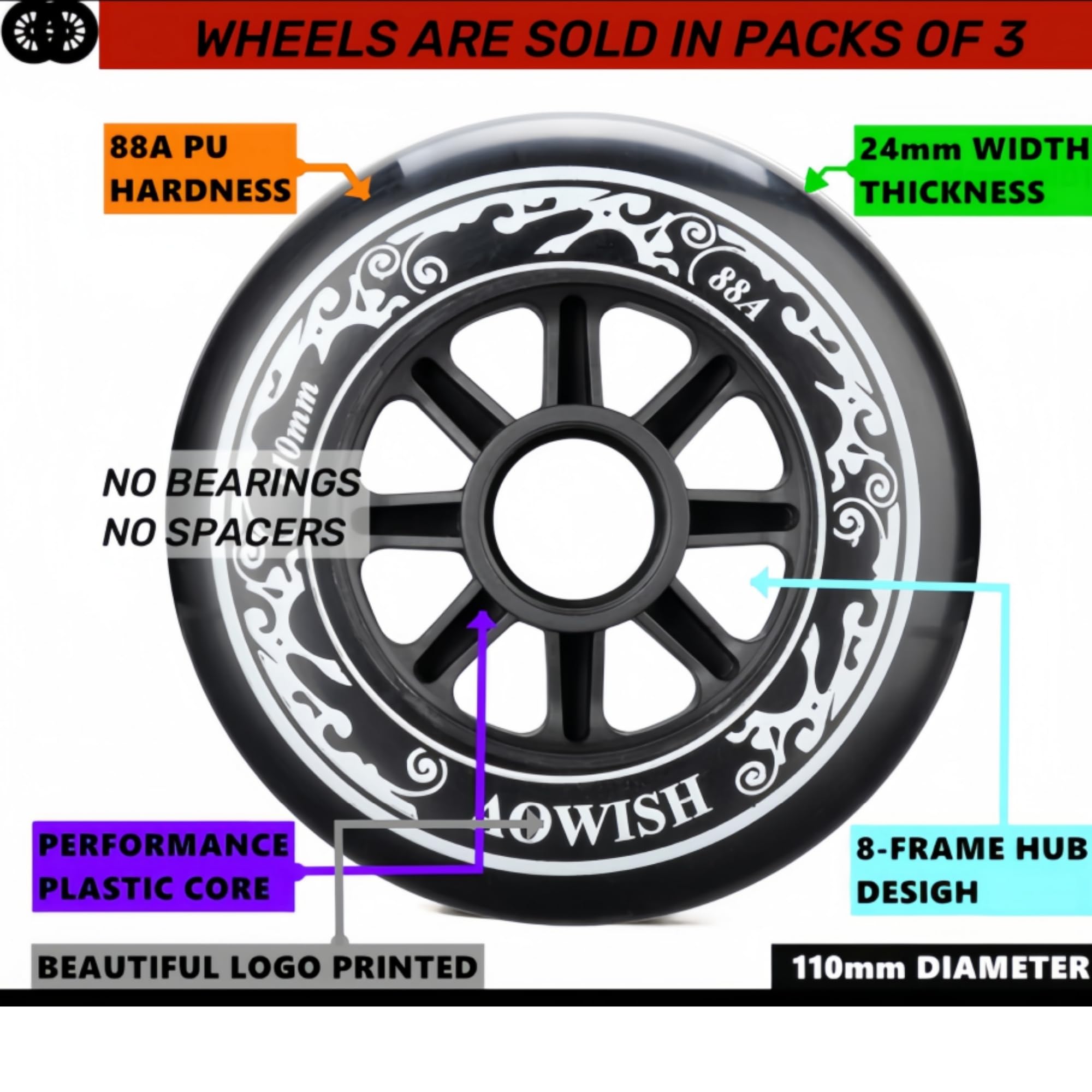 ✔ WHAT YOU GET - Every package Includes 3 Total Cost-effective Inline Speed Skate Wheels (110mm Dia, Black Color). Well made and durable,100% New. If you are not 100% satisfied with this wheel, you can replace or return the goods unconditionally as soon as possible or contact us.