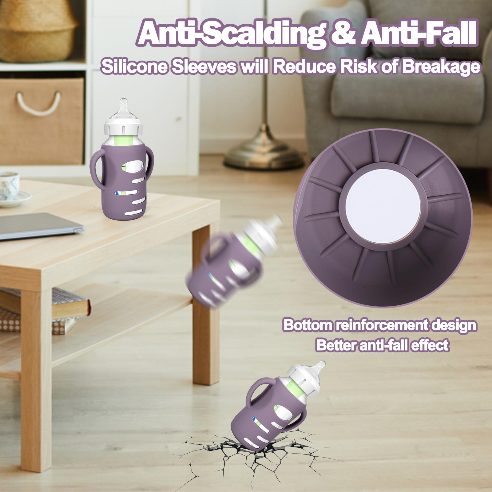 Unique Designed for Baby Bottles - The silicone sleeves for Dr. Brown's Baby Bottles can against drop down,bumps and scratches. These are a must essential product for using glass baby bottles. They provide a more sturdy protection for glass baby bottle from breaking if dropped, which also unique handle design shape make it easier to grip and hold
