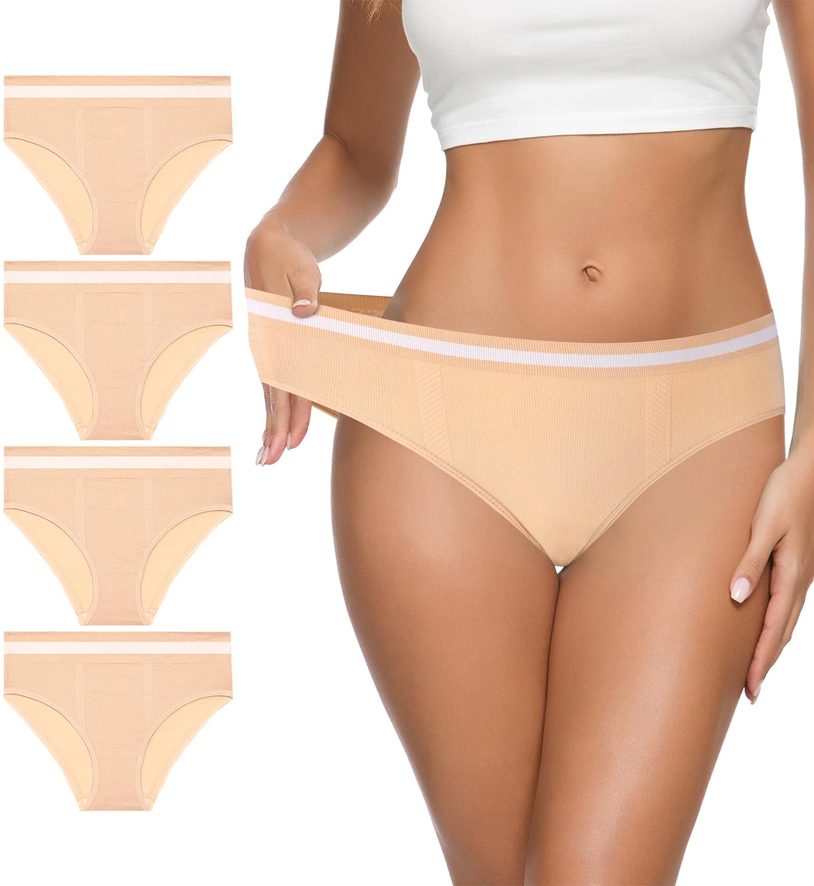 NO SHOW UNDERWEAR FOR WOMEN:Featuring a thin,flat and stretchy elastic waistband,this underwear offers a smooth silhouette for an invisible look.Integrated with high-elastic fibers,it ensures exceptional stretchability,elasticity and slight abdominal retraction,enabling free movement throughout the day,whether at work or during workouts.It prevents sagging,binding or pilling